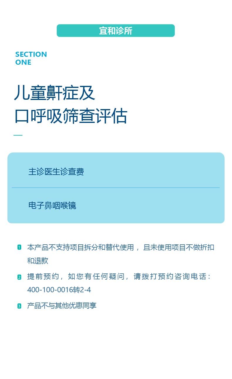 【综合门诊&新中关宜和门诊】暑期专享 儿童鼾症及口呼吸筛查评估