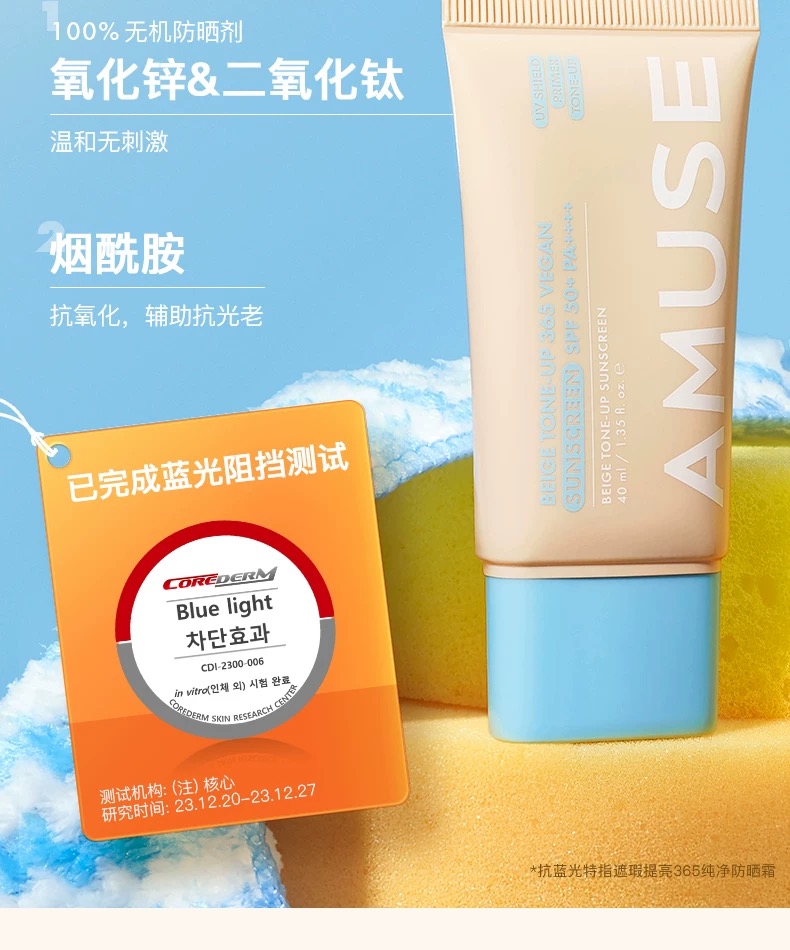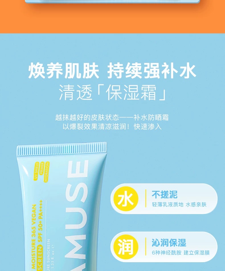 张元英同款!韩国Amuse防晒霜隔离妆前乳保湿水润提亮修正肤色40ml
