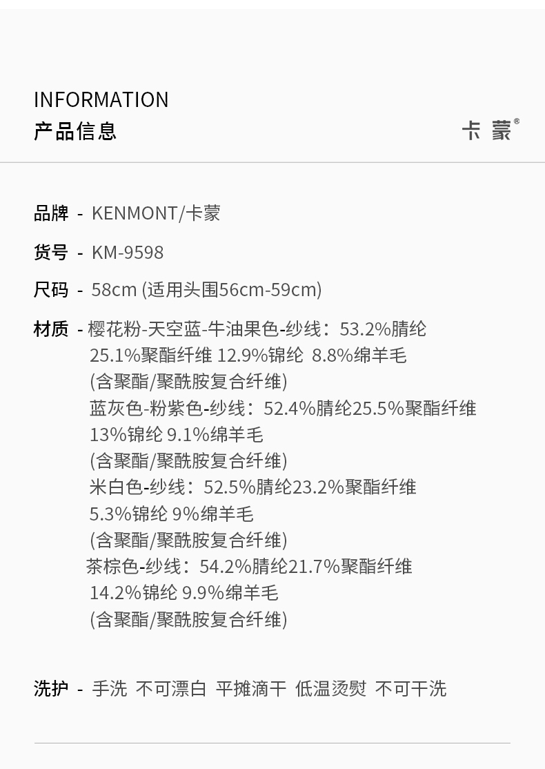 卡蒙绵羊毛护耳针织帽毛线帽女修饰脸型显脸小时尚百搭秋冬新款KM-9598