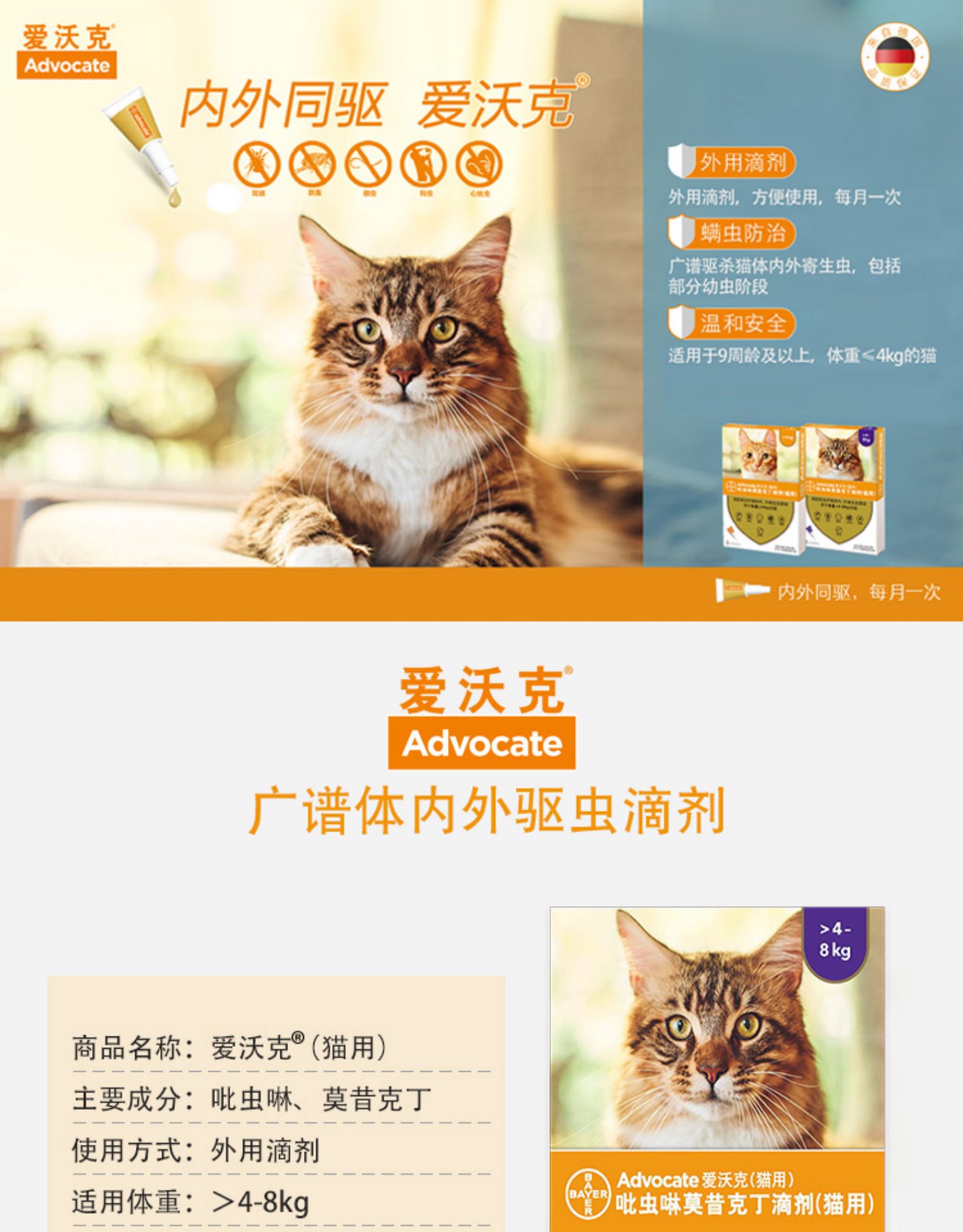 博来恩复方非泼罗尼吡喹酮滴剂(适用小于2.5kg猫)0.3ML*3(猫/狗药品):(天津22/9/1,广东22/9/1,淮安22/9/1)