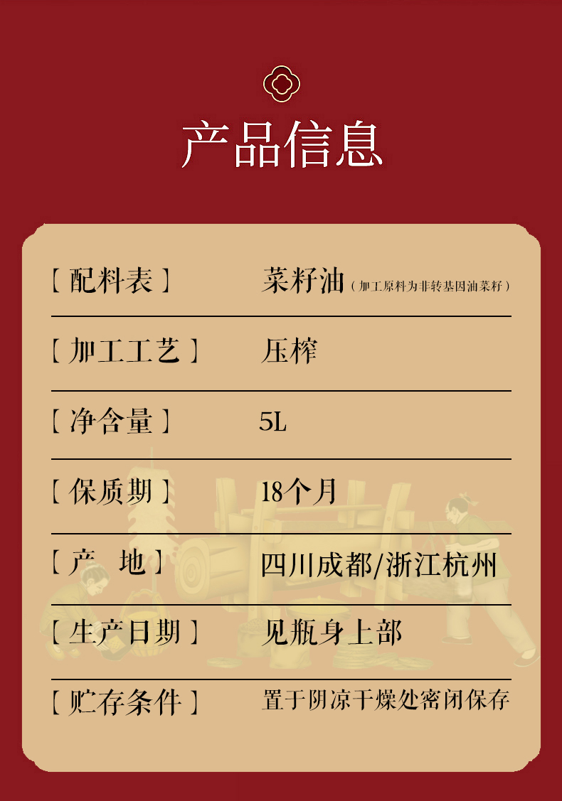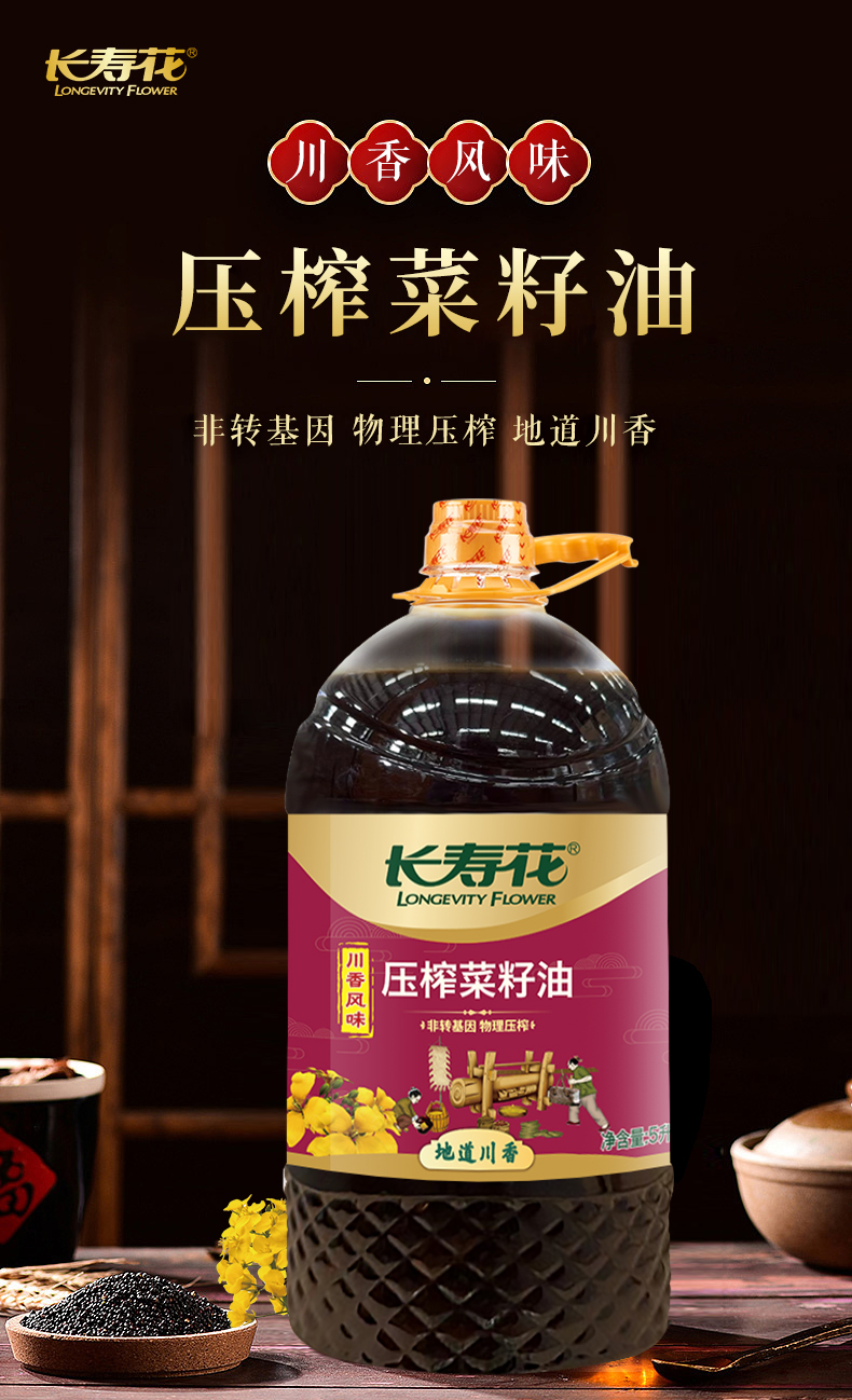 【高圆圆推荐】长寿花菜籽油大容量非转基因物理压榨食用油植物油 川香5L