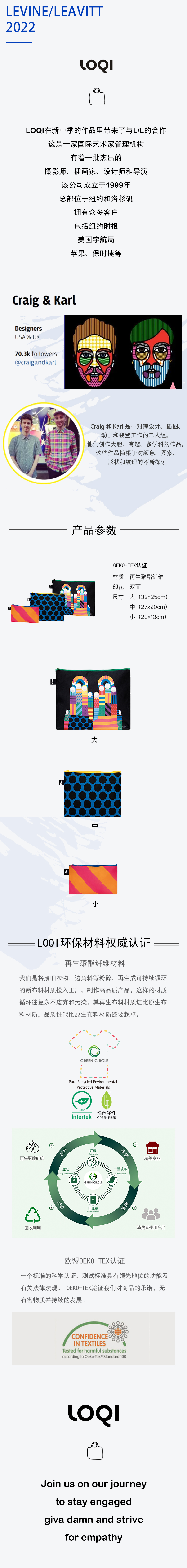 德国LOQI x L/L 艺术系列 环保收纳袋三件套 INS网红插画风 文具数码配件收纳整理套包洗漱化妆防泼水潮流