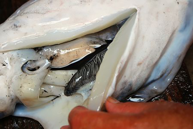②而大船出海捕捞基本是一个月后才回来,捕捞后的墨鱼会冰鲜在船舱,回码头后才加工,墨鱼鲜度差,收购价便宜,其晒出来的墨鱼干腥味浓,口感差。