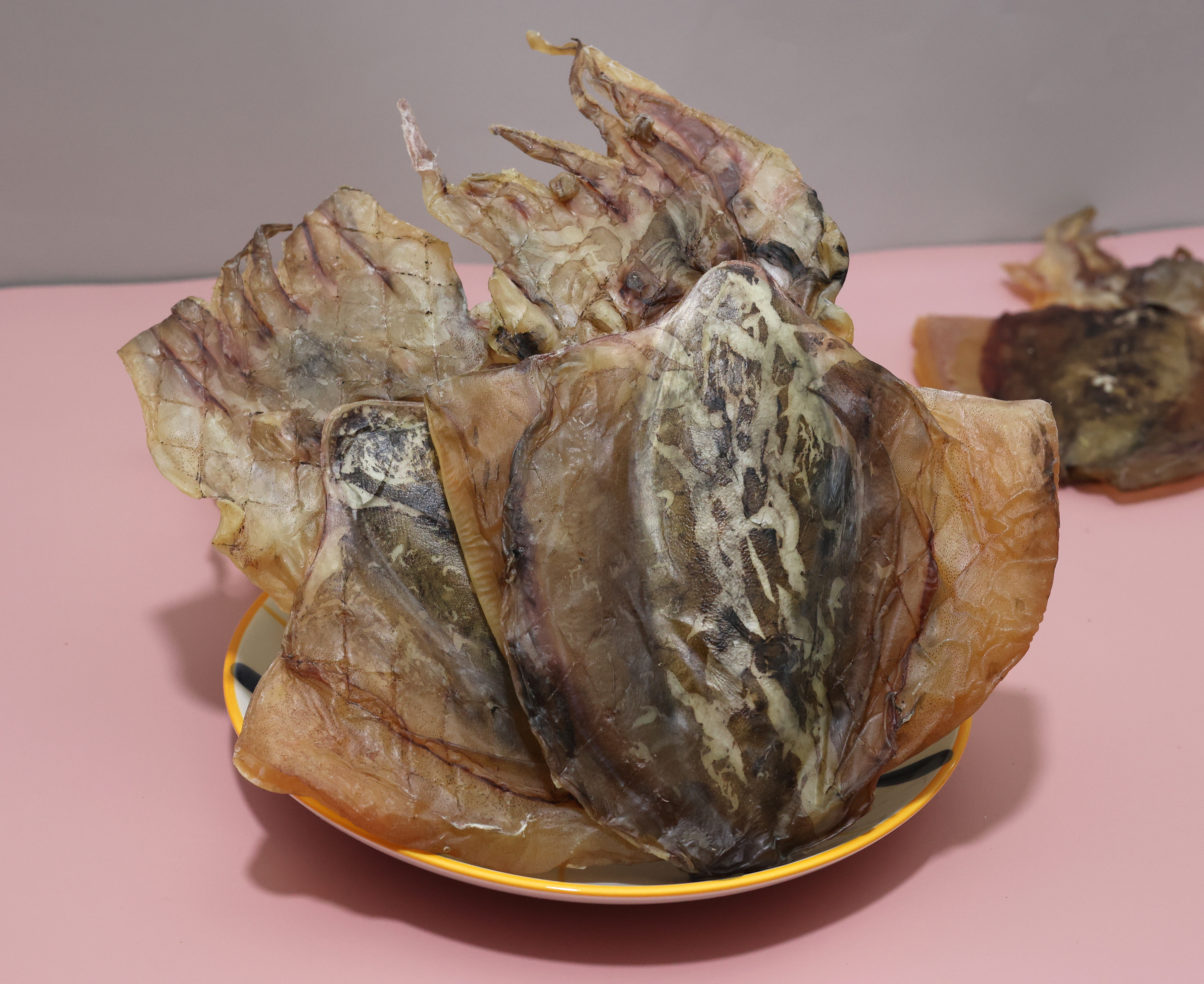 2. 墨鱼干柔软、不生硬、体形完整坚实,肉肥厚,鱼干微透红色,无霉点。