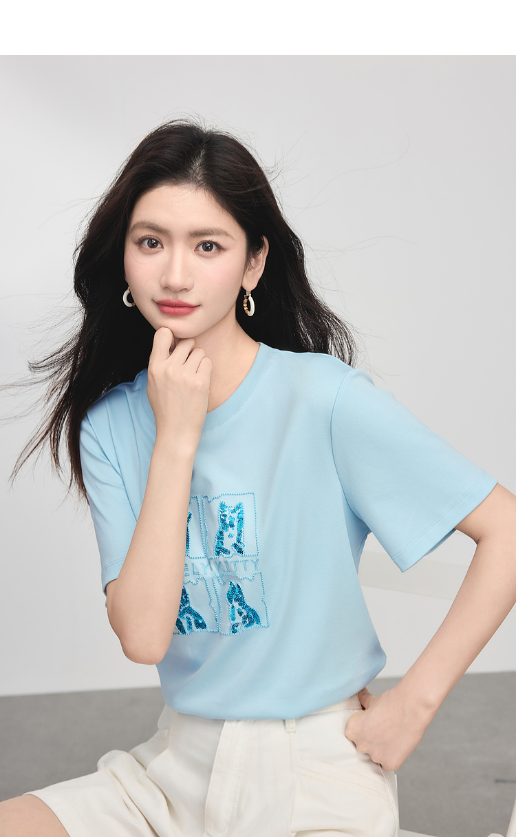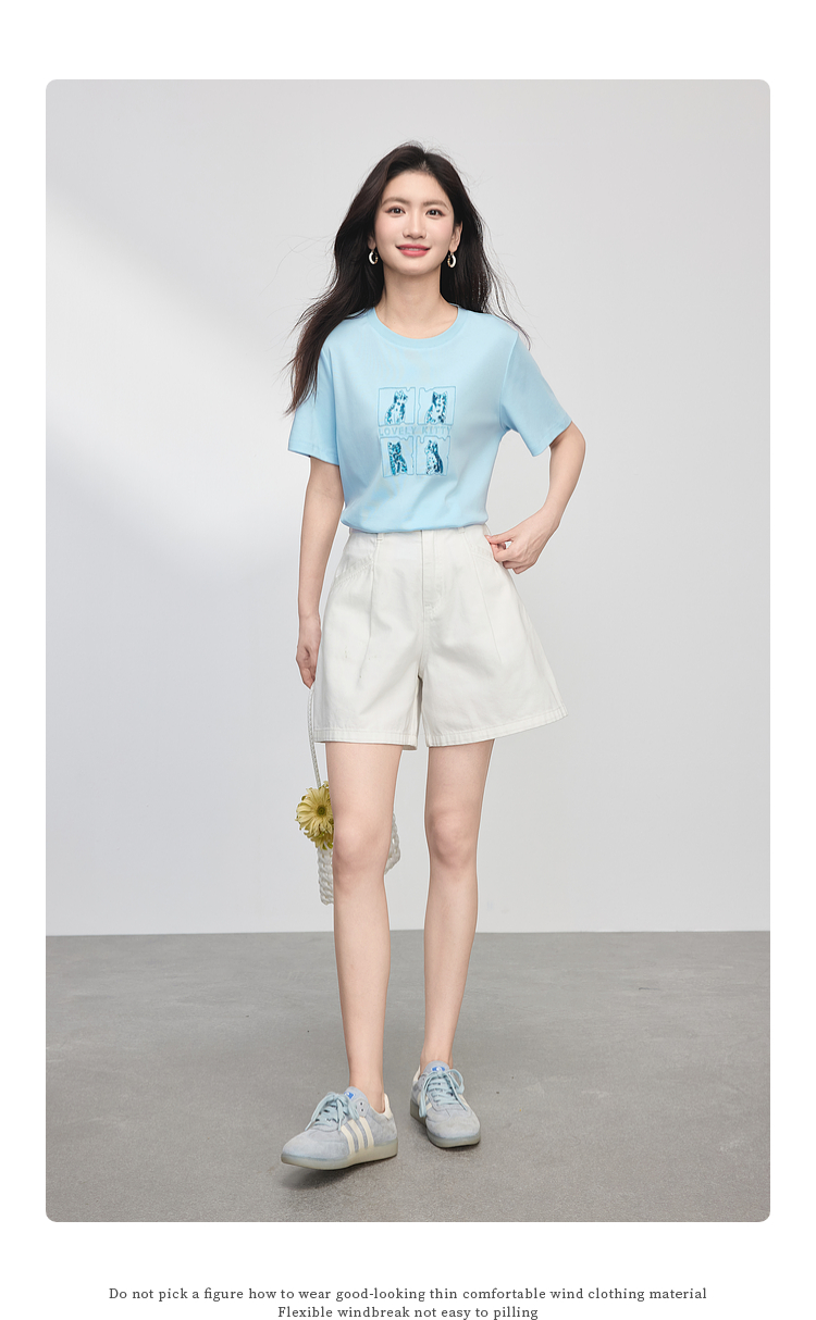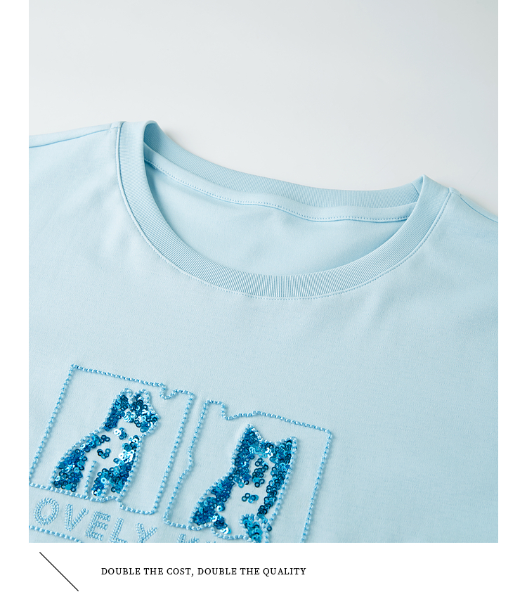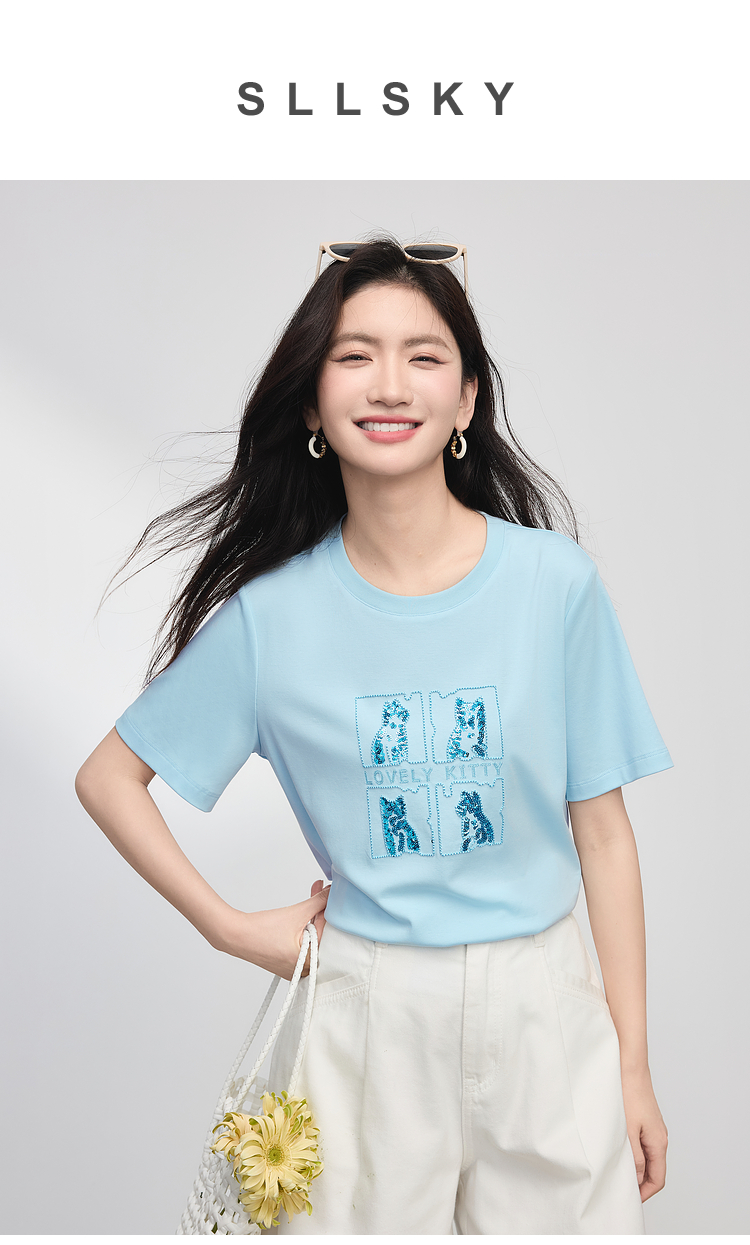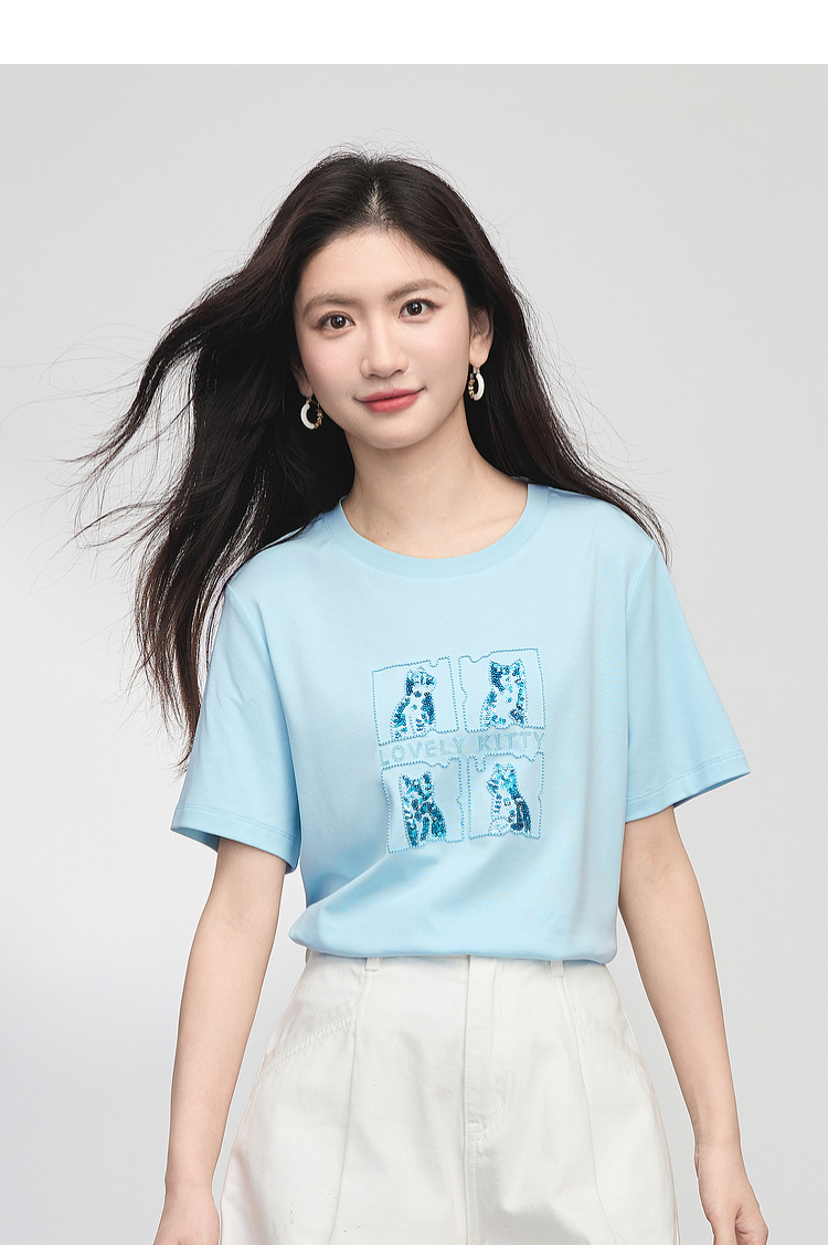 【专属特价】熙世界趣味减龄猫狗印花T恤女夏季短袖休闲风纯棉体恤2025年新款