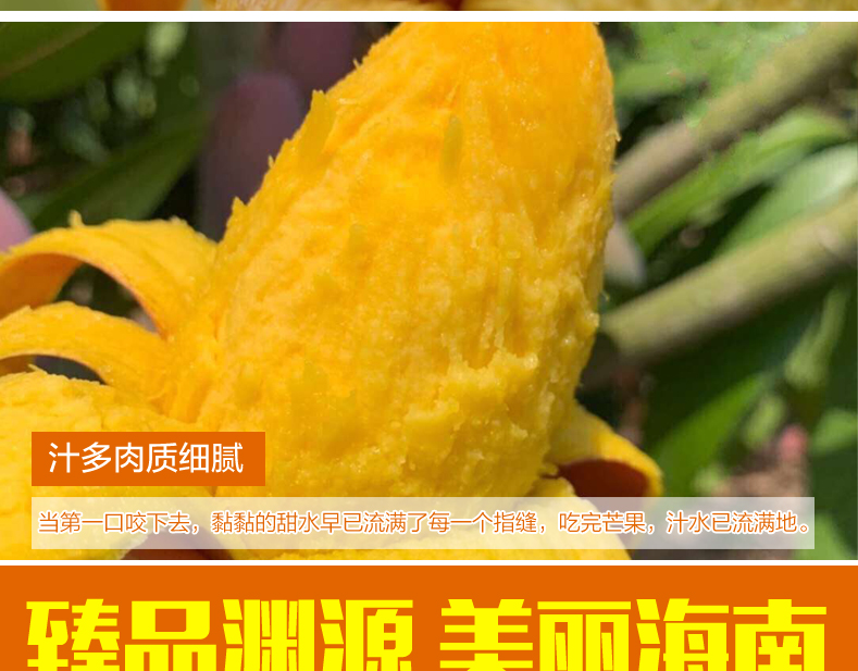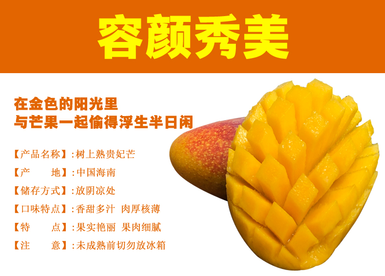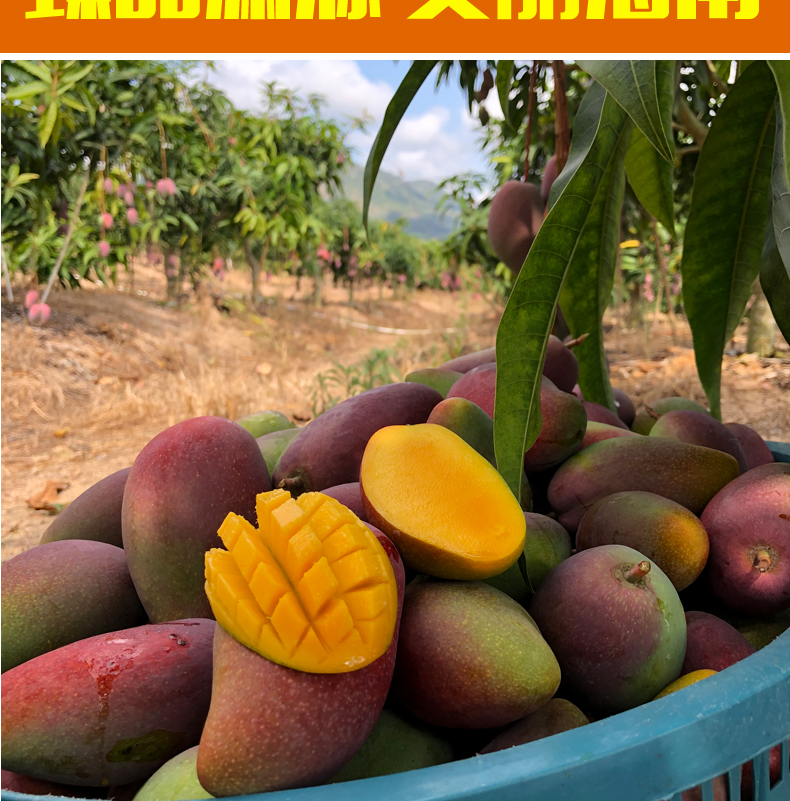 注:所发果子为正宗树上熟贵妃芒,完全遵循果子自然成熟采摘,无法提前采摘存放仓库