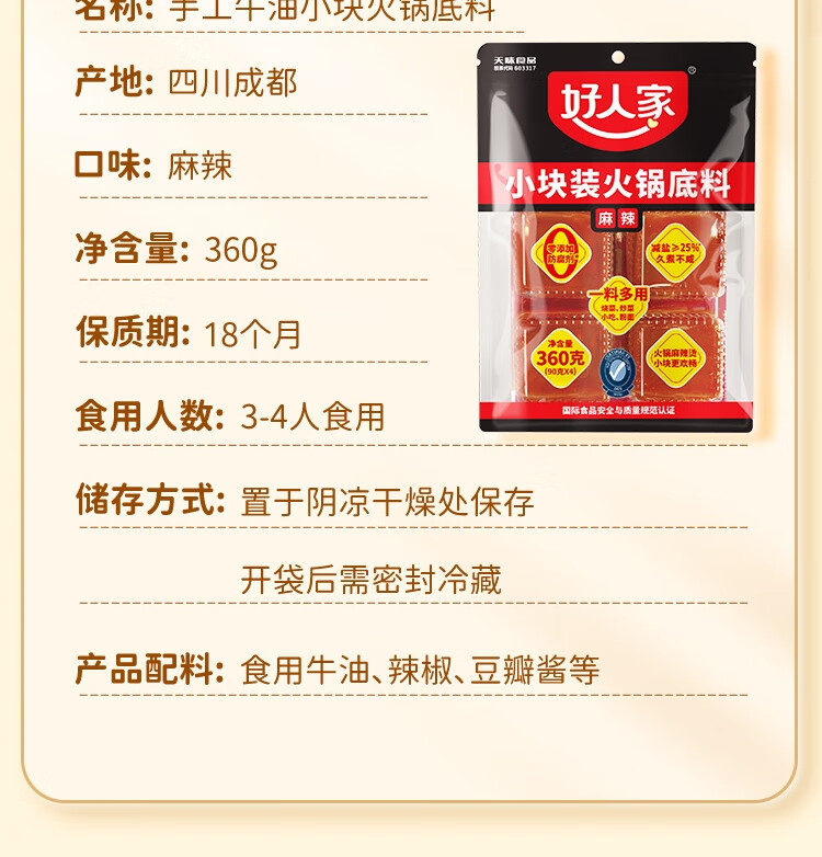 好人家小块装火锅底料麻辣味360g