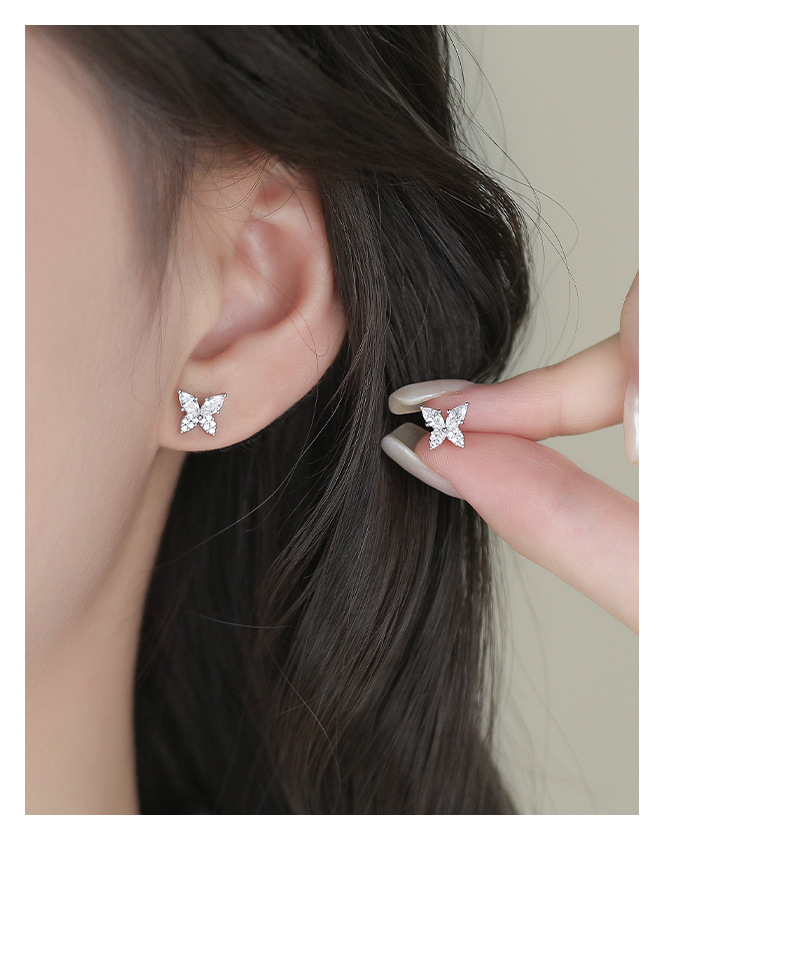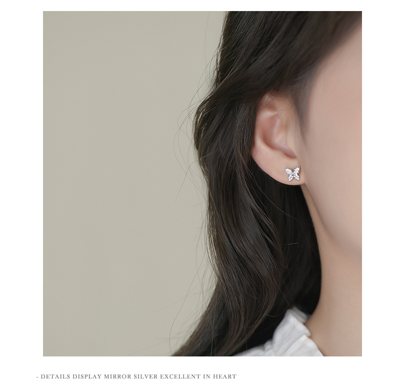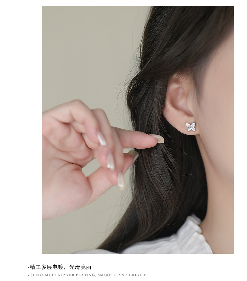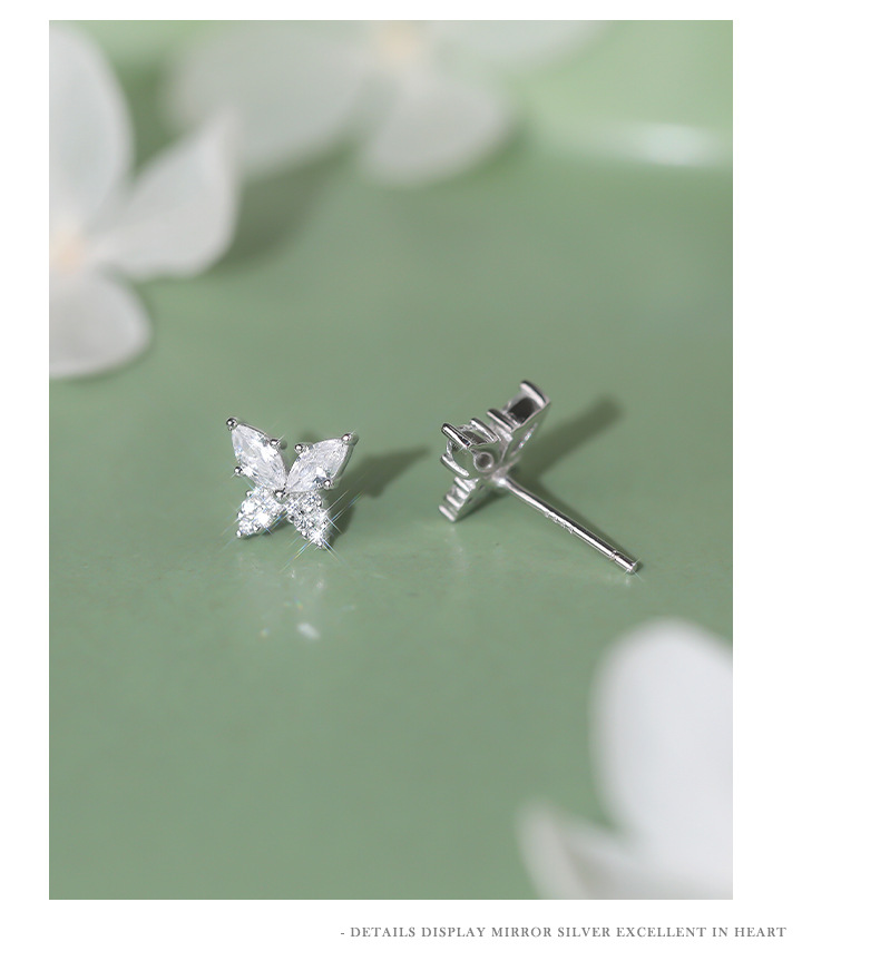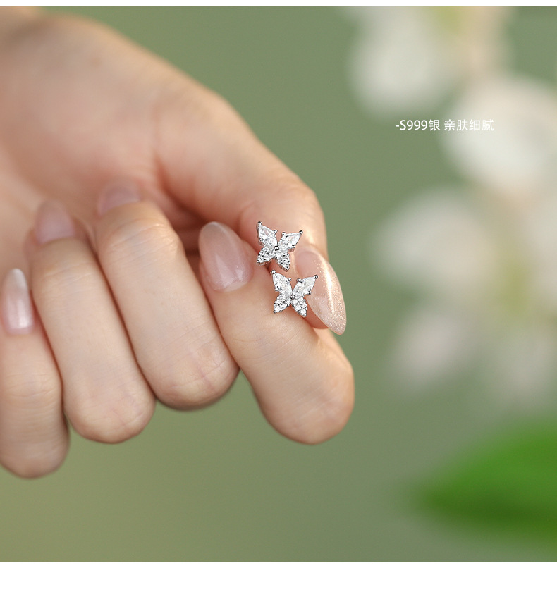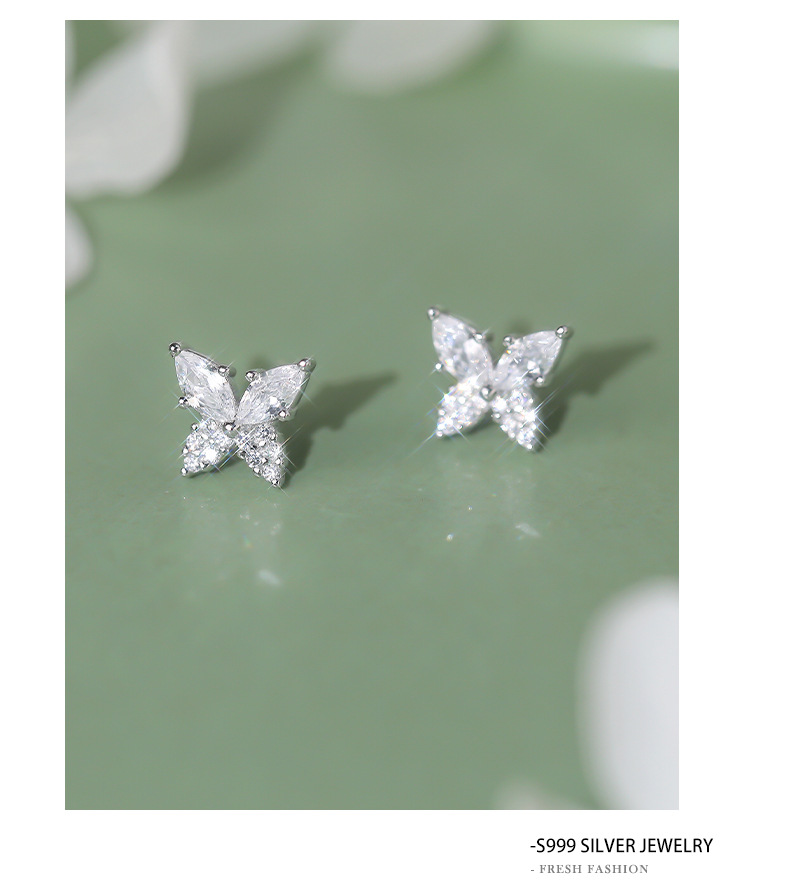 【蝴蝶半夏】S999纯银蝴蝶镶嵌锆石耳钉【YXS-E5455】 商品图4