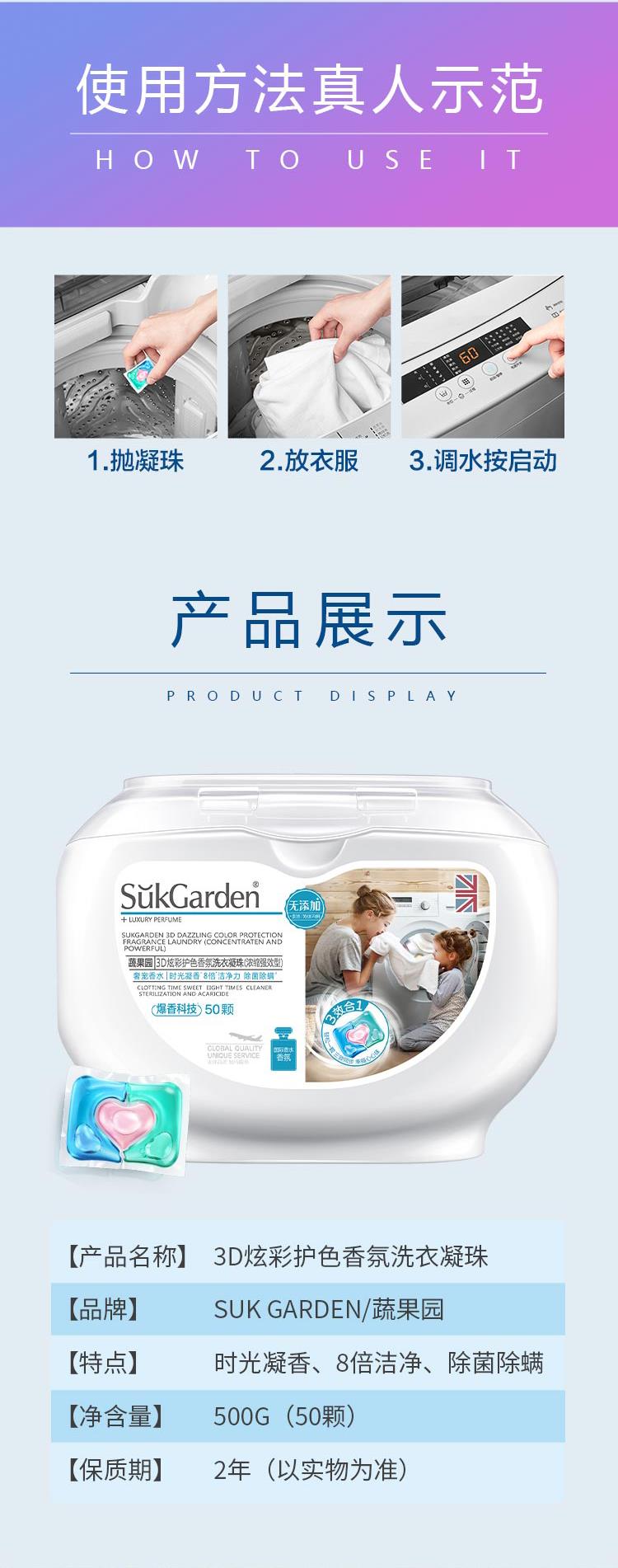蔬果园3D炫彩护色香氛洗衣凝珠(浓缩强效型)50粒/盒