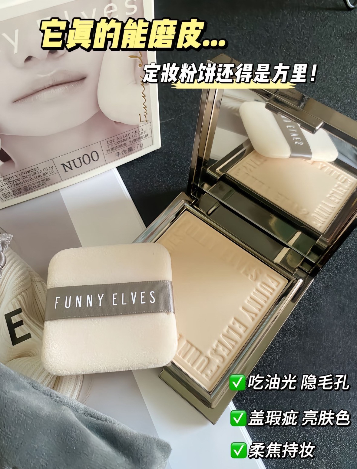 Funny Elves 方里 · 中样柔焦蜜粉饼3.5g控油定妆干湿感光粉饼持久 NU00