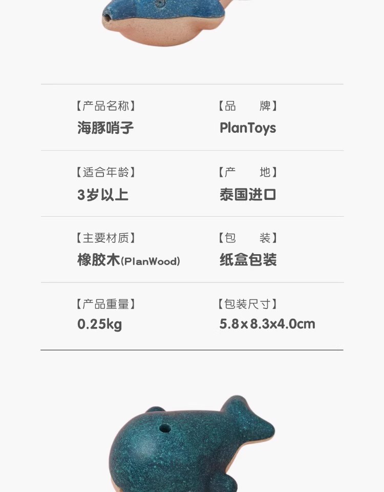 【积分兑换】Plantoys鲸鱼哨子 婴儿幼儿园可爱小喇叭吹奏3岁+