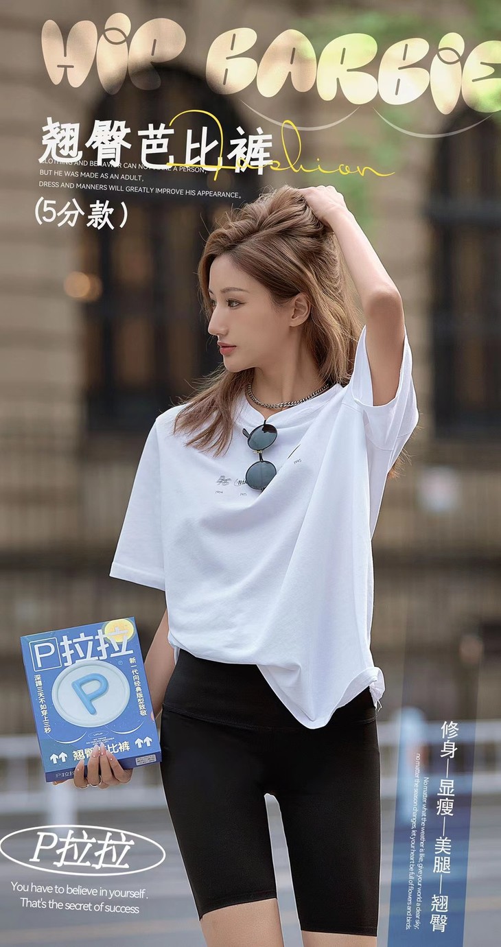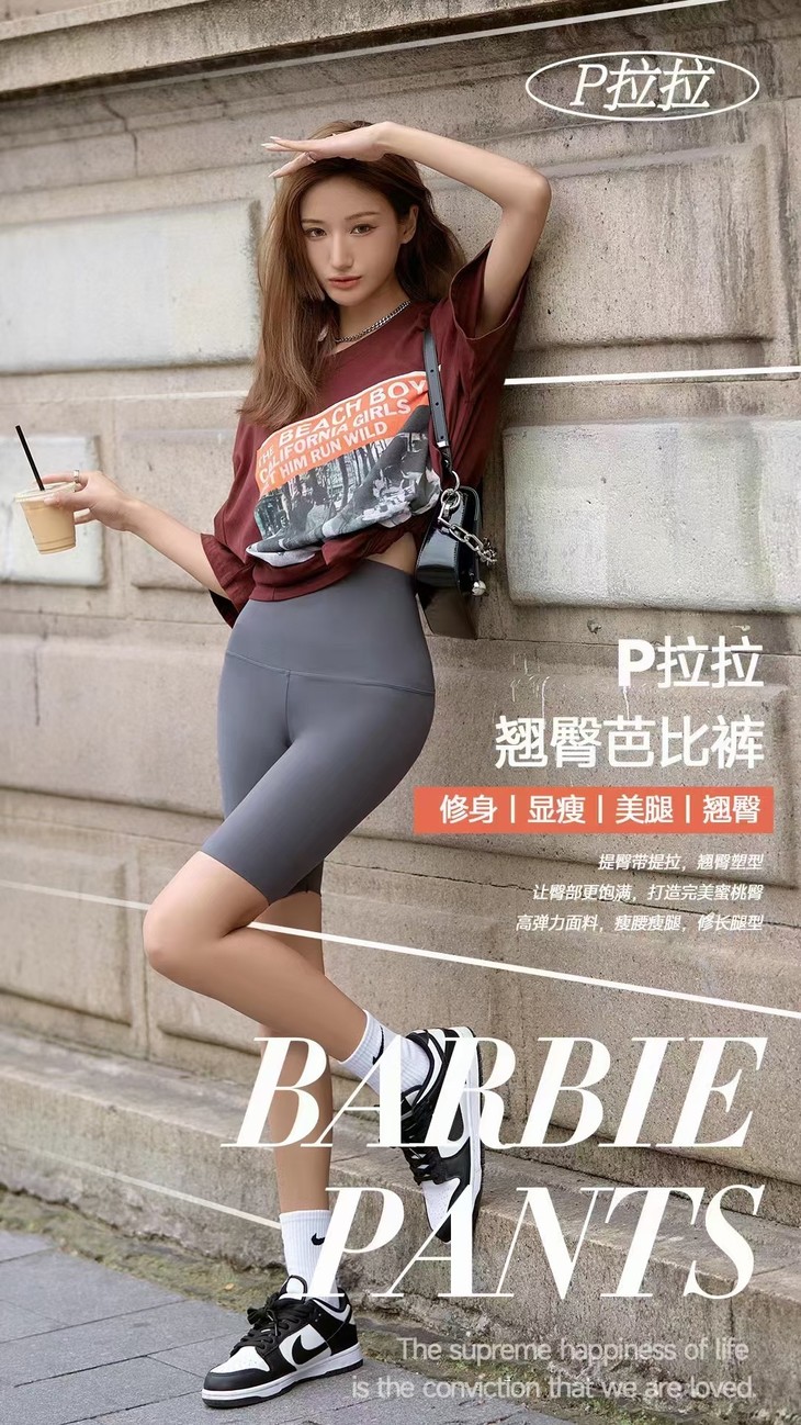 【刘畊宏女孩必备装备!】P拉拉五分翘臀芭比裤 女外穿打底裤 九分提臀鲨鱼裤 健身瑜伽裤