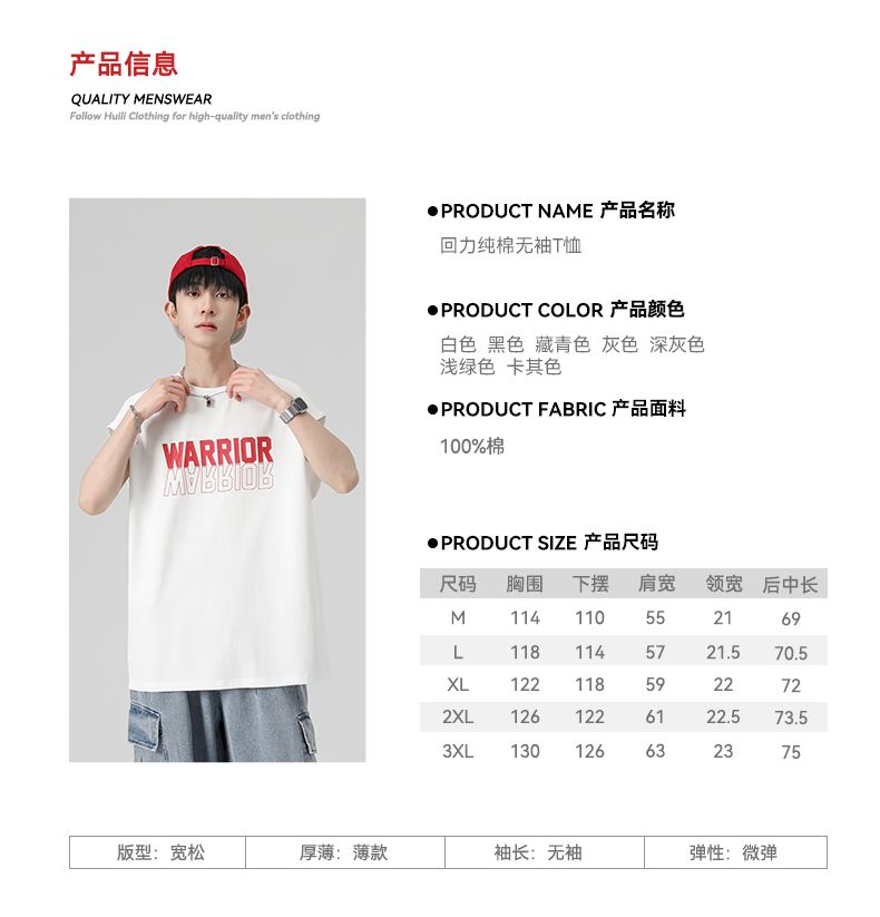 回力纯棉T恤男士2025夏季新款美式复古重磅背心宽松潮流无袖上衣