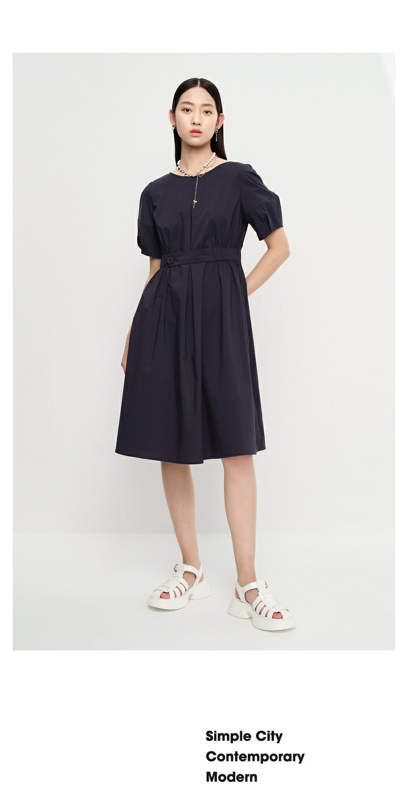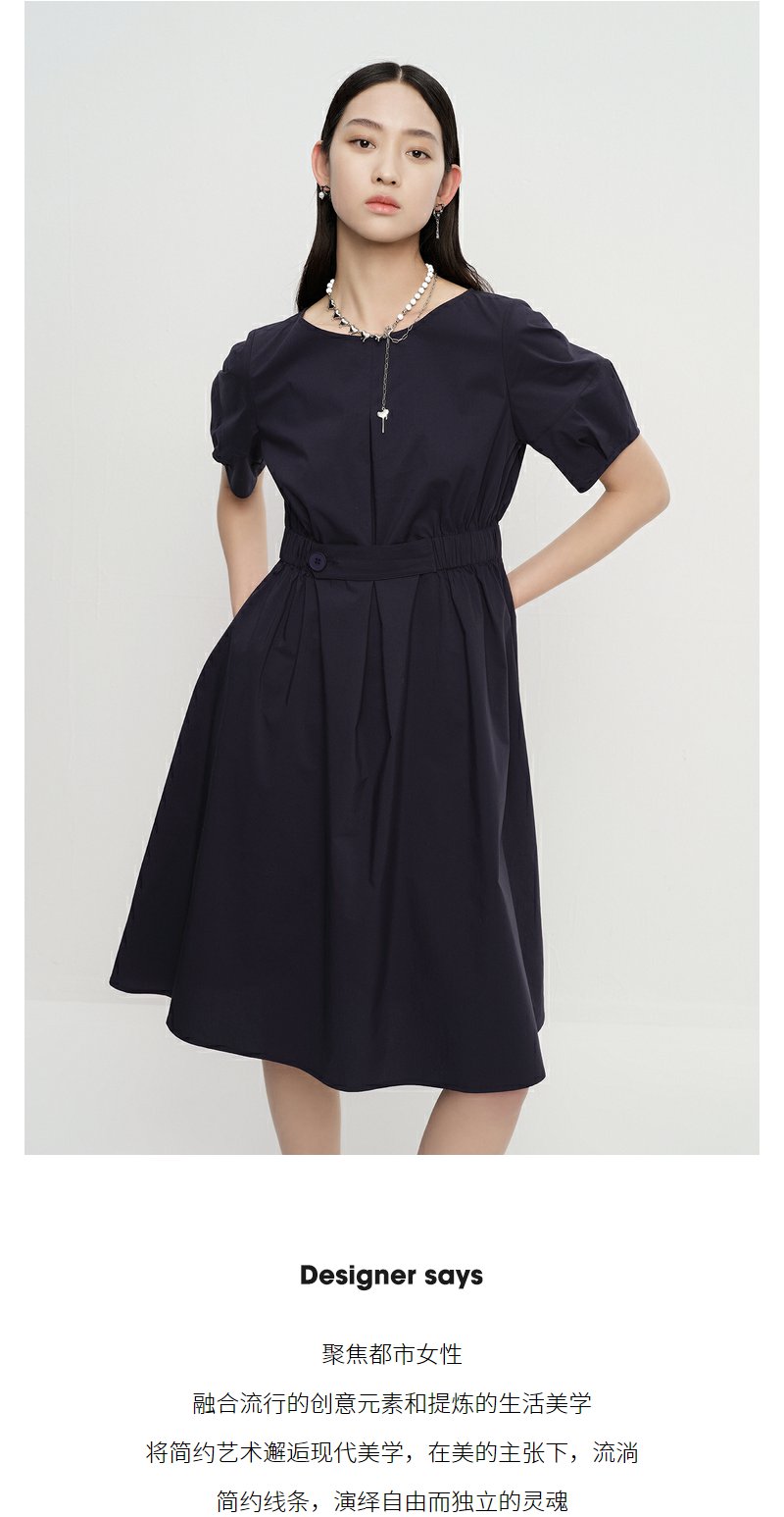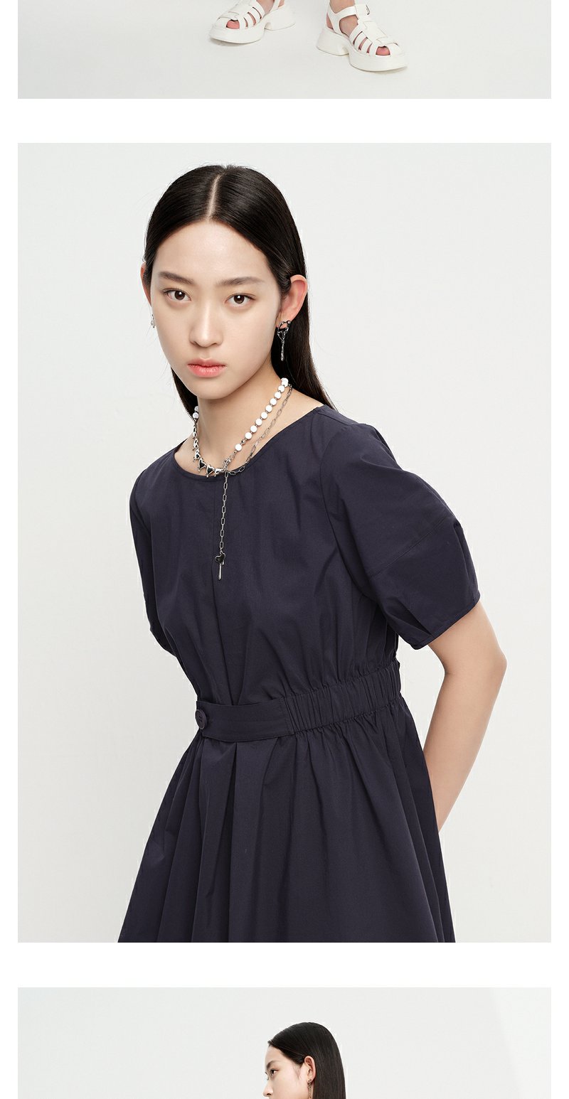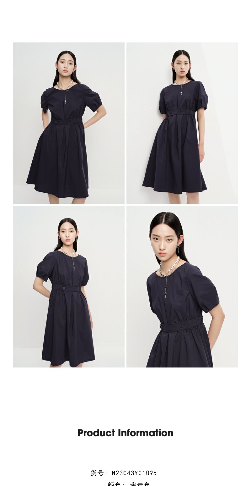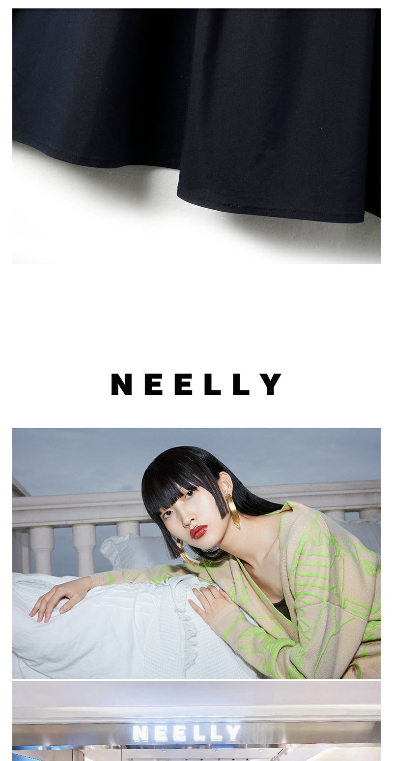 NEELLY纳俪商场同款圆领连衣裙女中长款松紧收腰简约A字大摆裙夏N23043Y01095