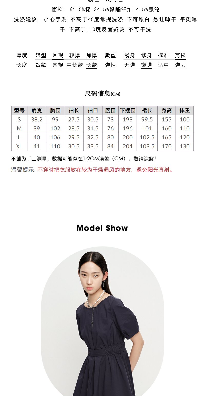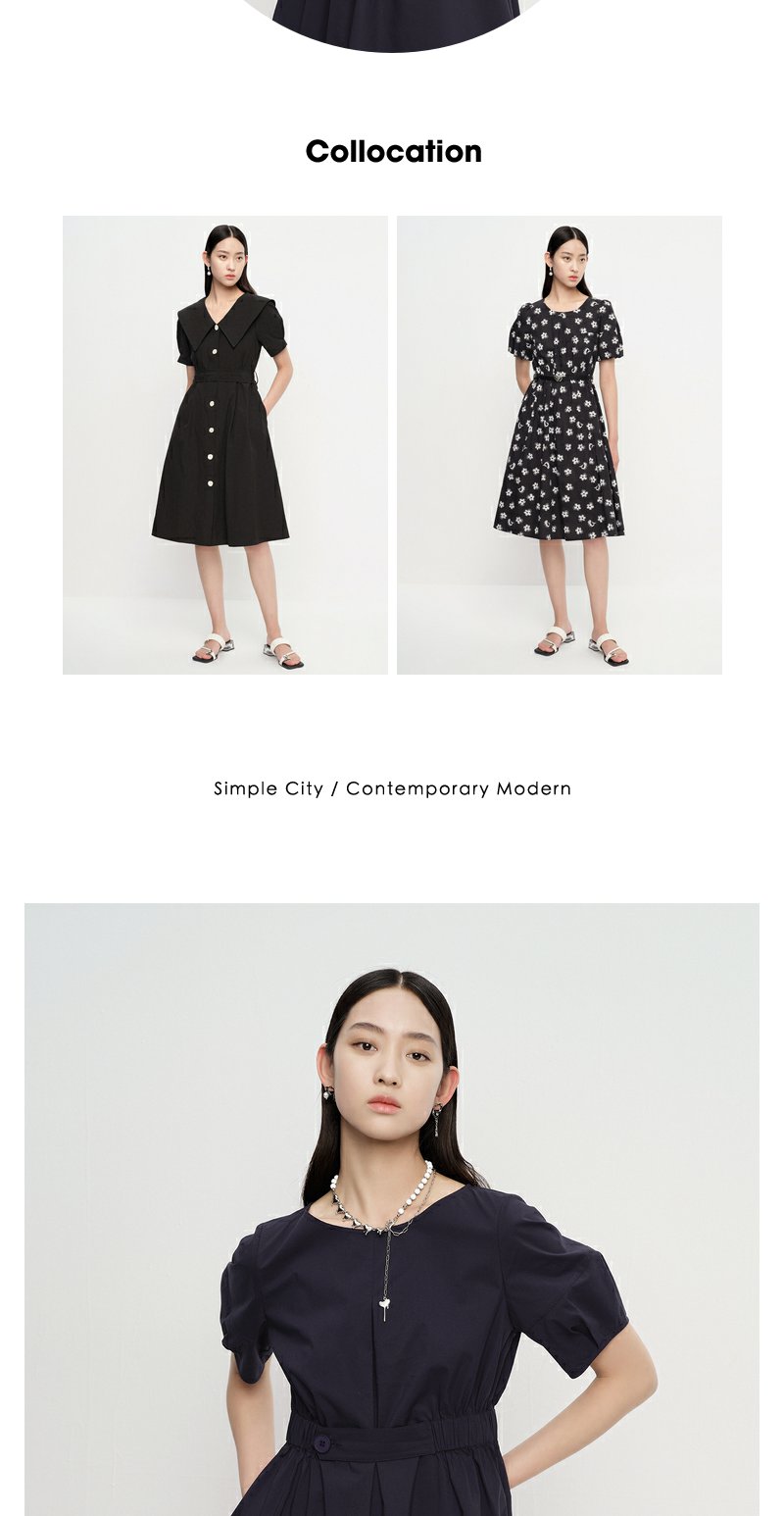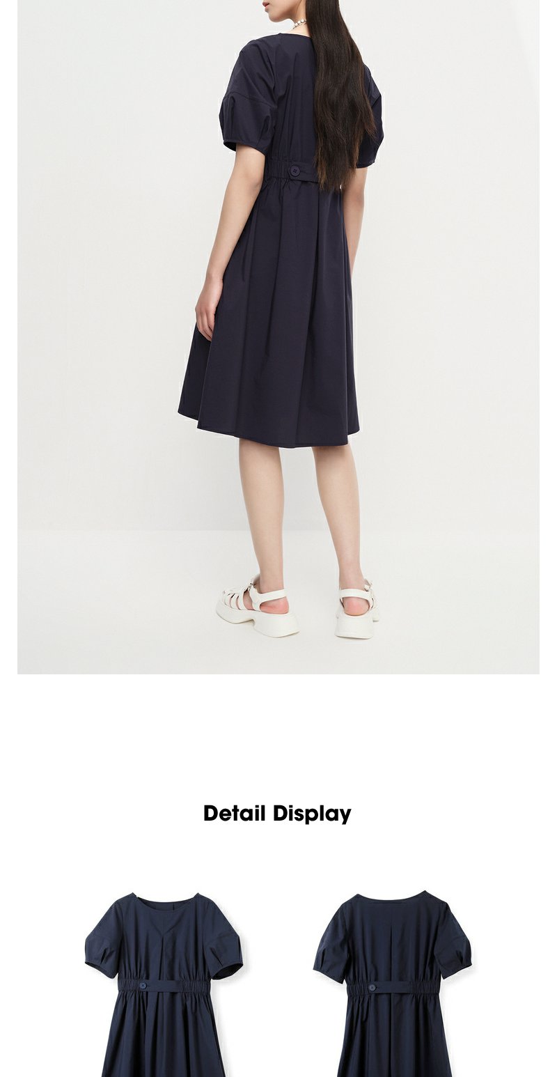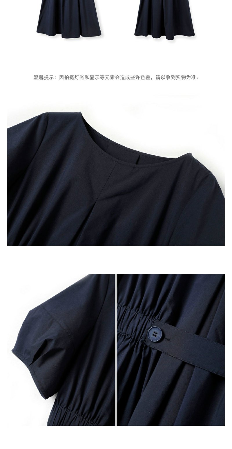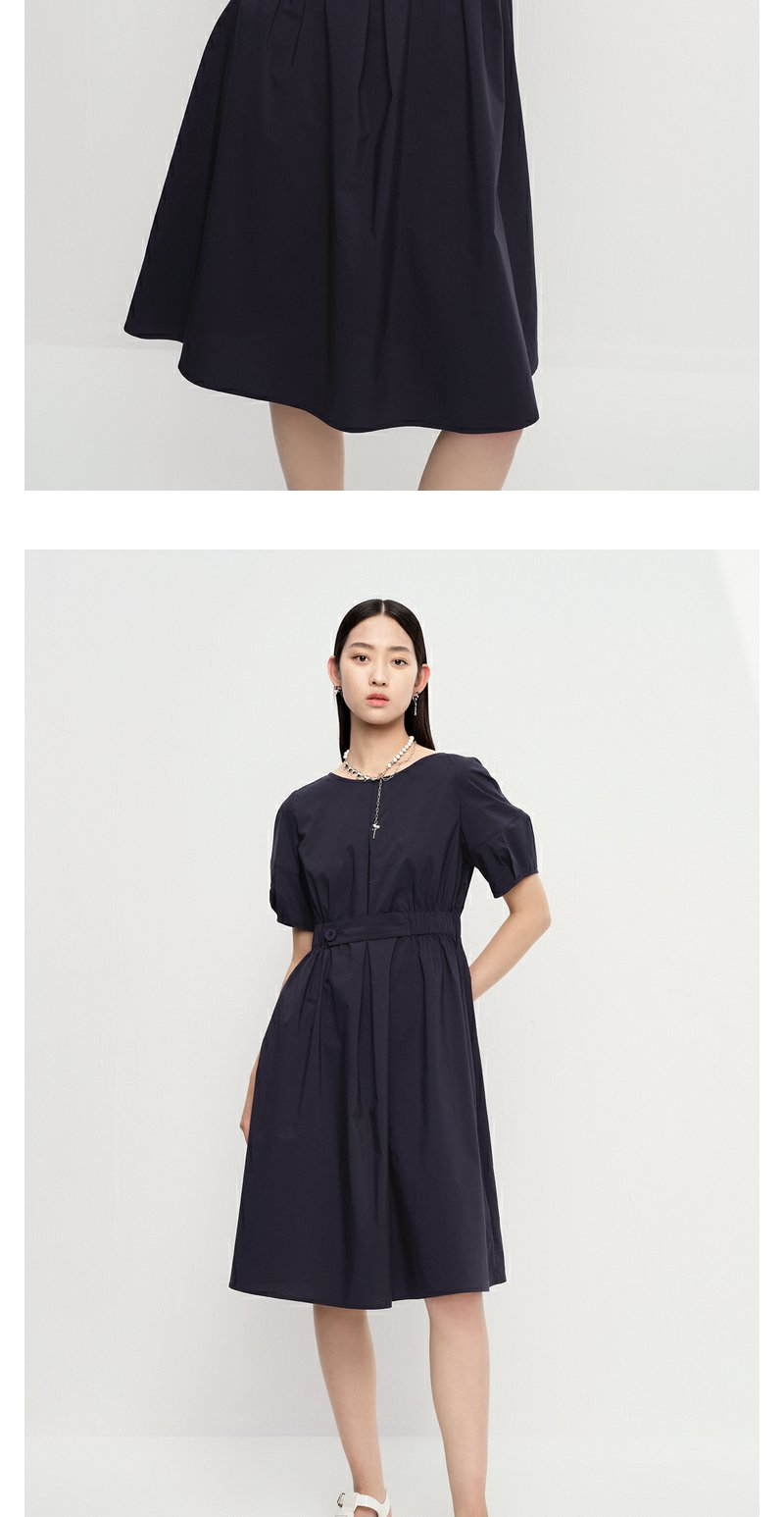 NEELLY纳俪商场同款圆领连衣裙女中长款松紧收腰简约A字大摆裙夏N23043Y01095