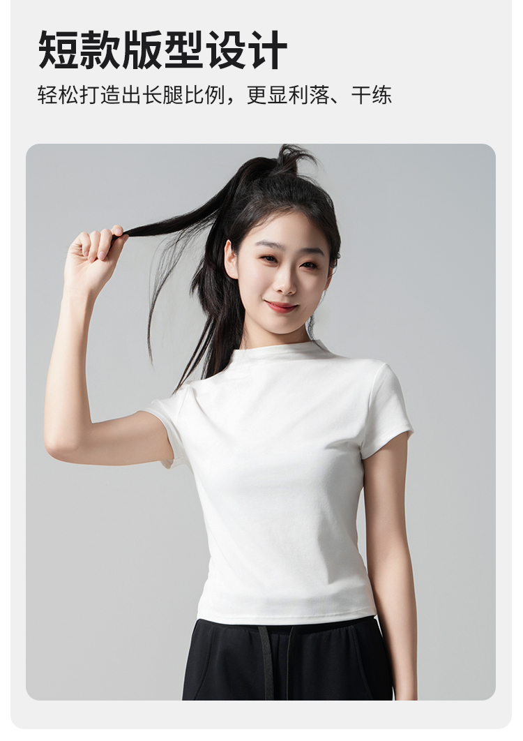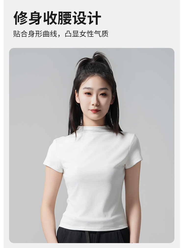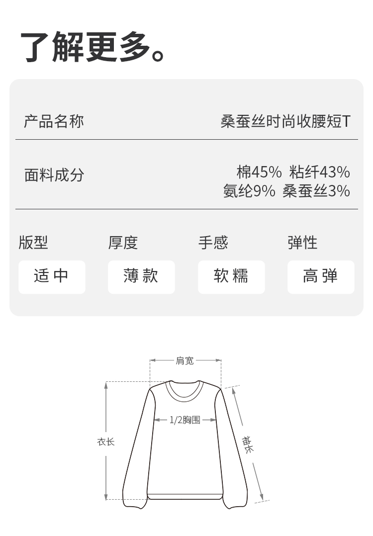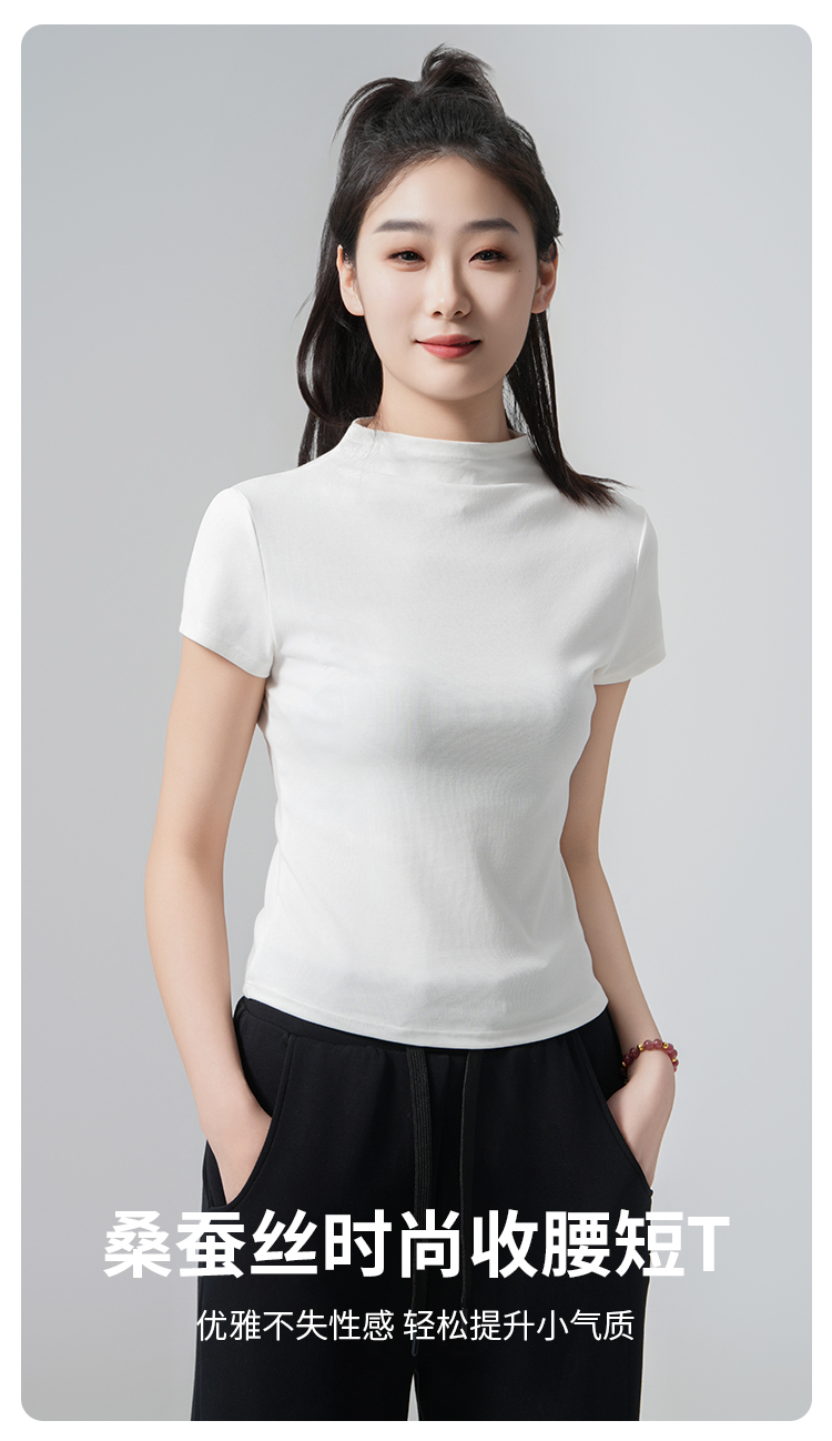 爱帝女士桑蚕丝时尚收腰短T罗纹修身收腰短袖衫