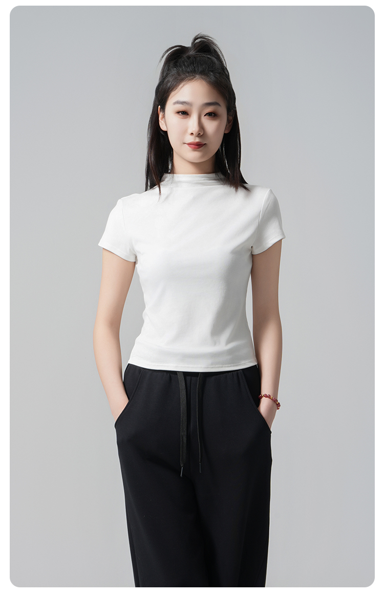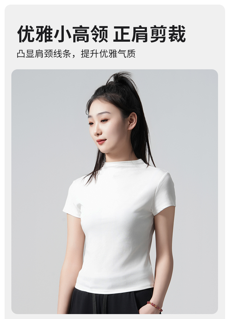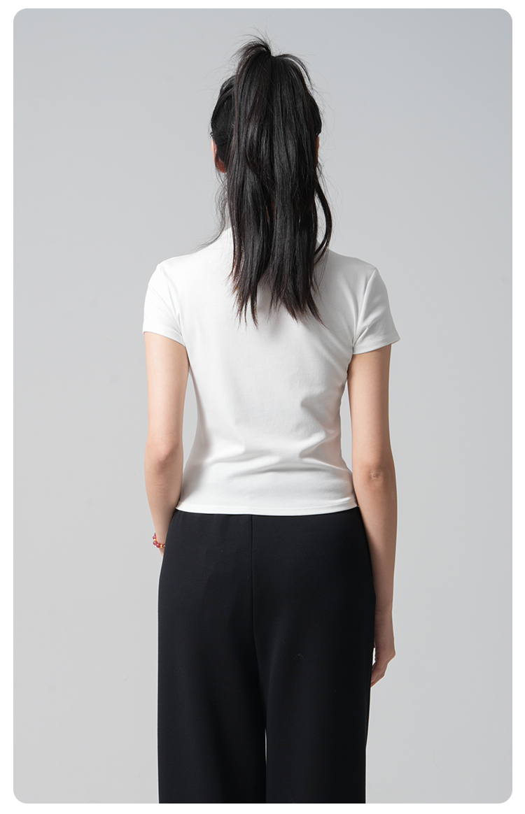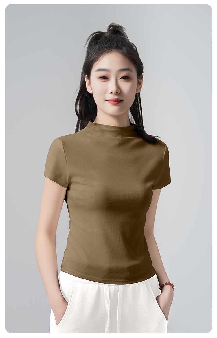 爱帝女士桑蚕丝时尚收腰短T罗纹修身收腰短袖衫