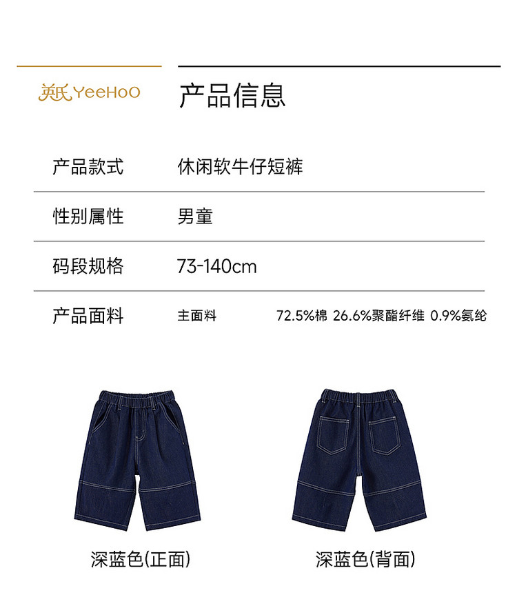 英氏男女童短裤夏季新款儿童水洗牛仔裤男宝宝裤子YRKEJ2S066A