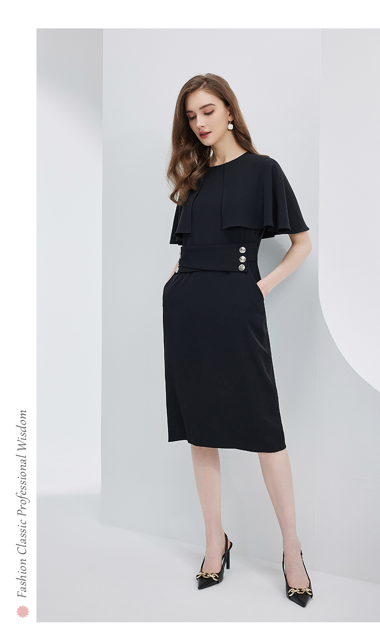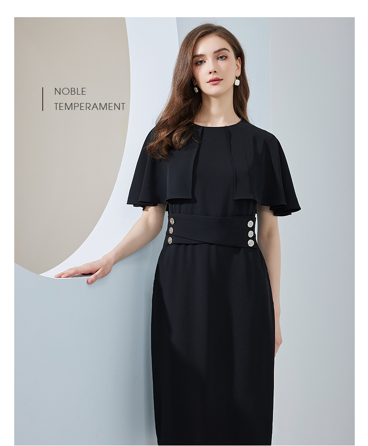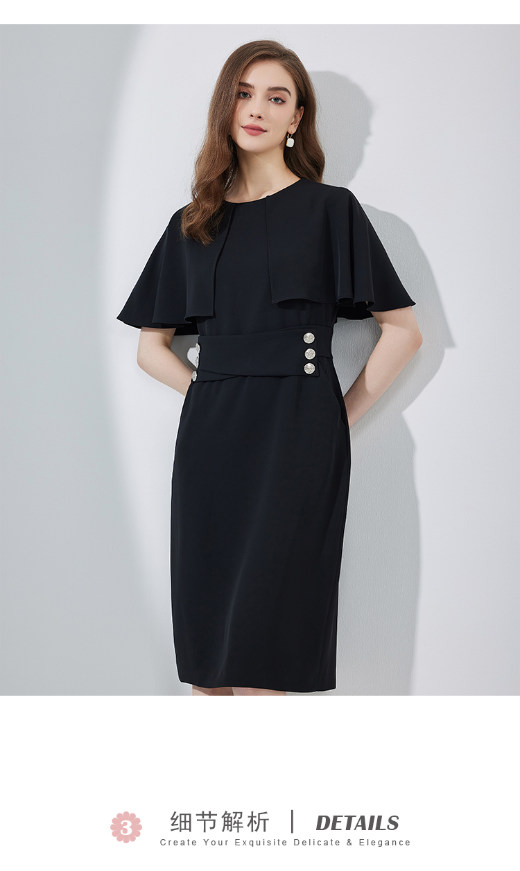 RF8C2斯尔丽瑟俪2023春夏新款时尚修身显瘦款披肩式连衣裙