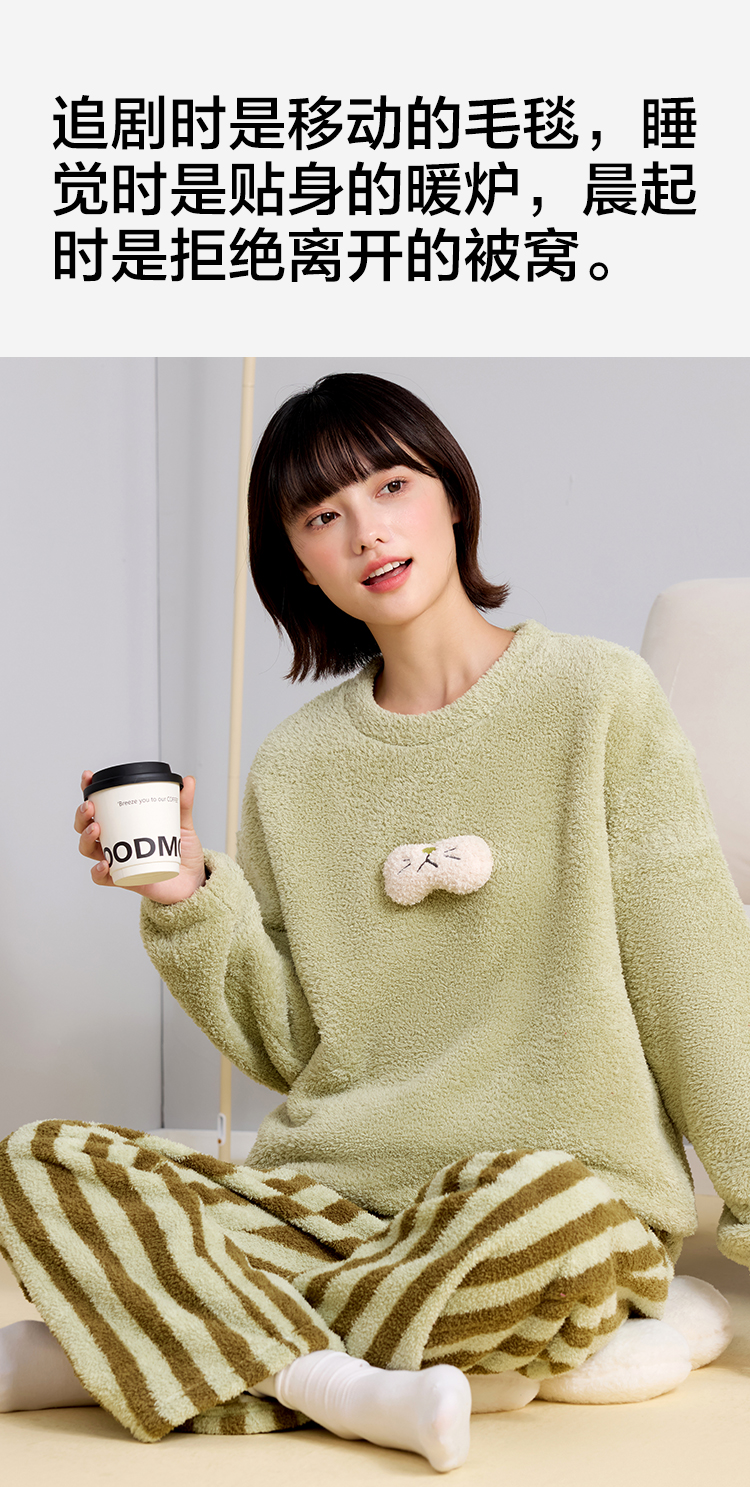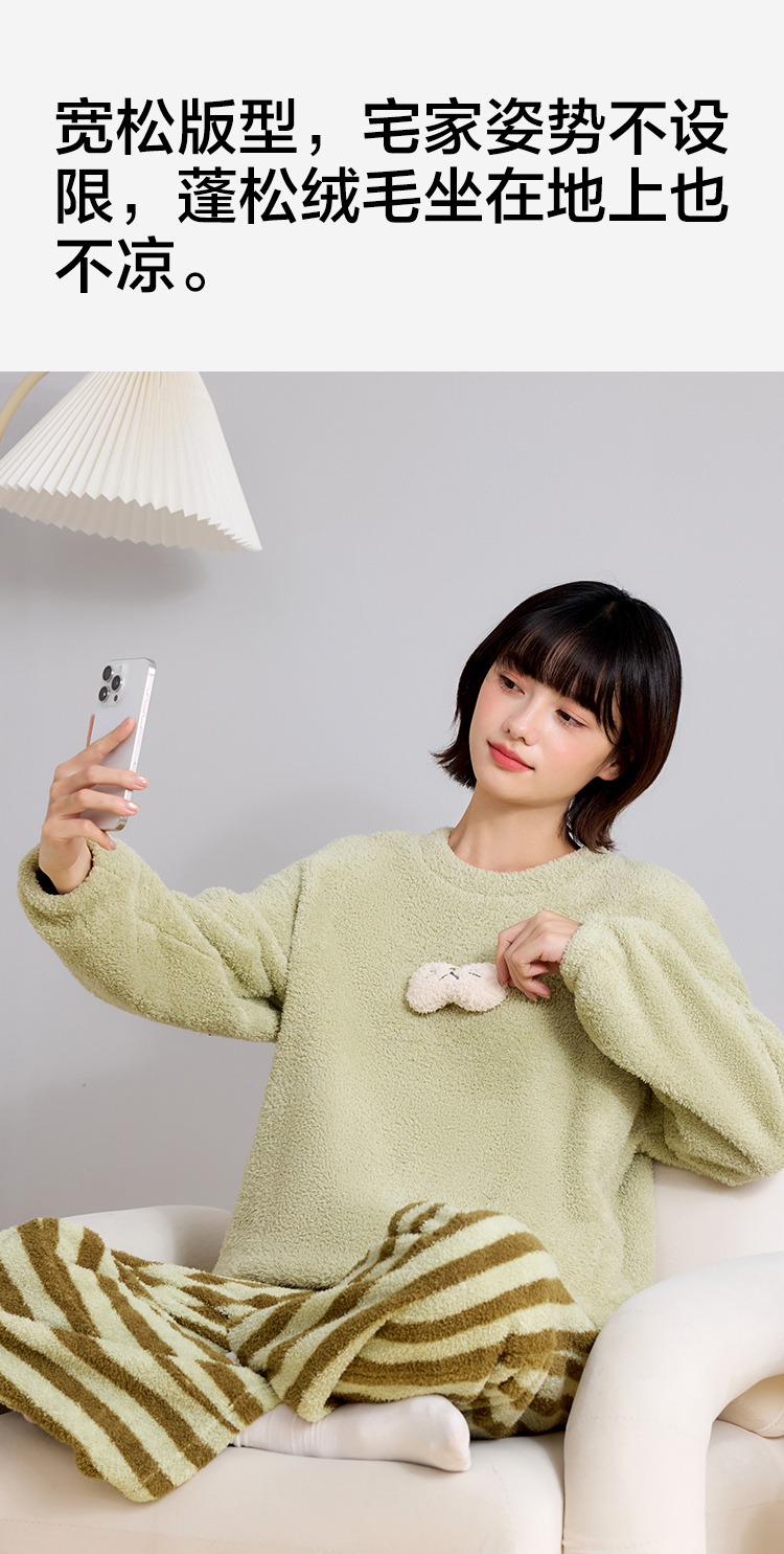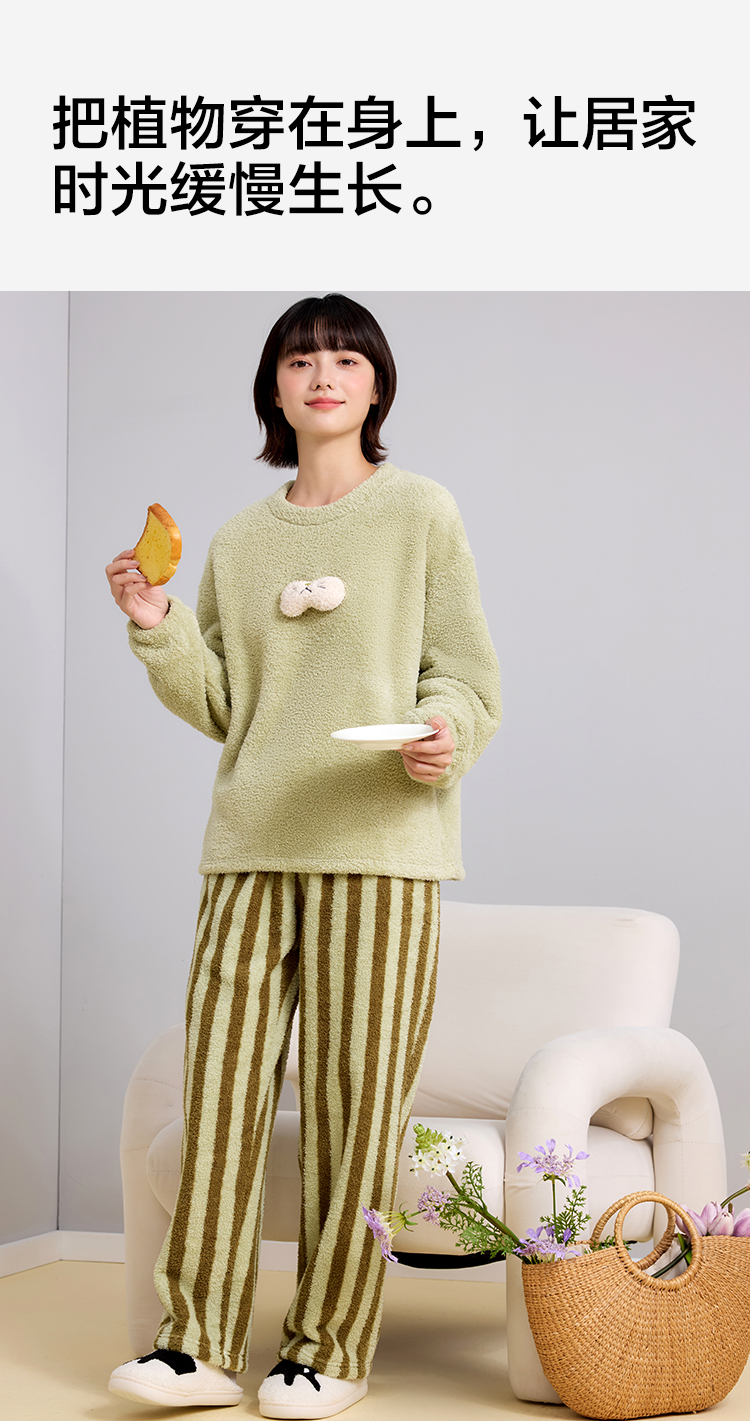 【M-2XL】【有棵树】女士双面半边绒家居服套装