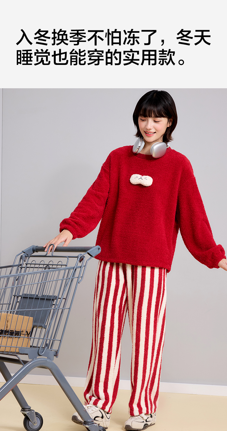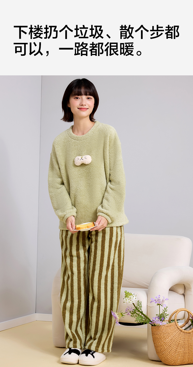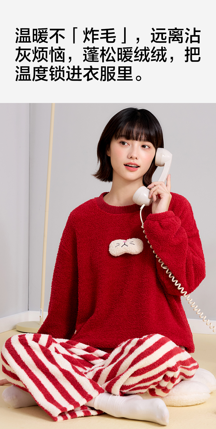 【M-2XL】【有棵树】女士双面半边绒家居服套装