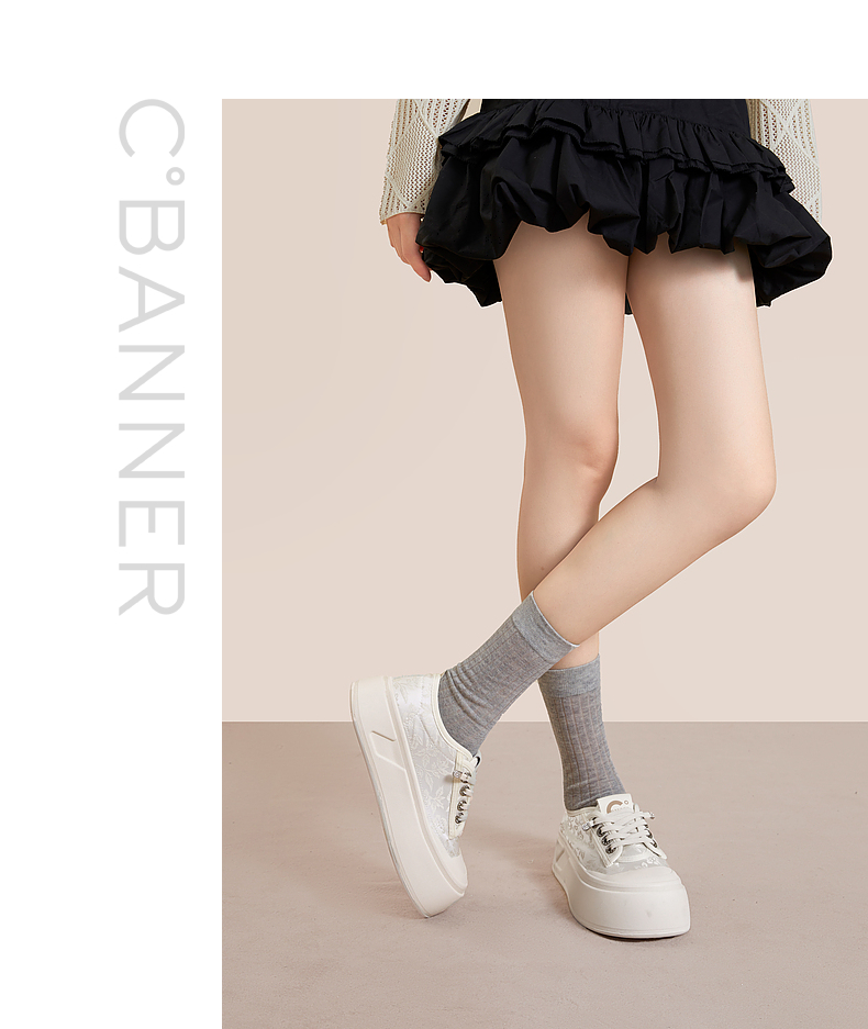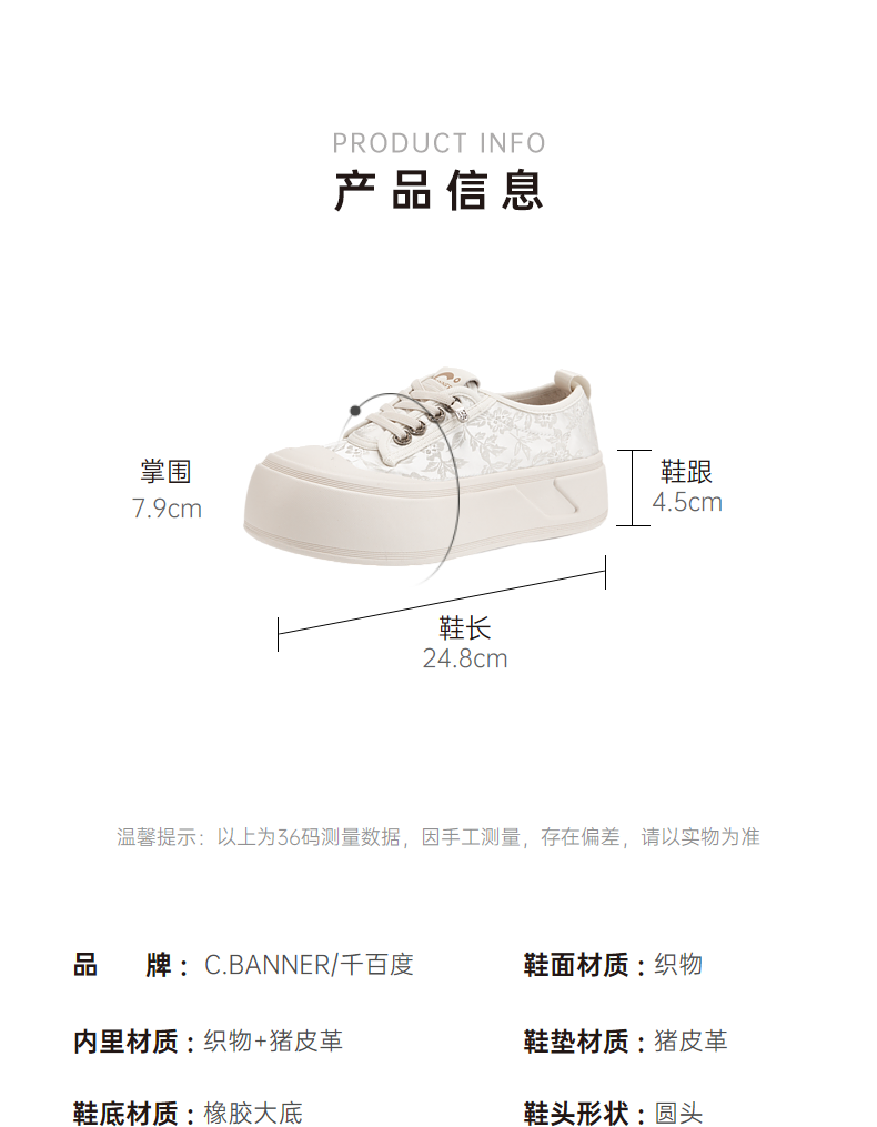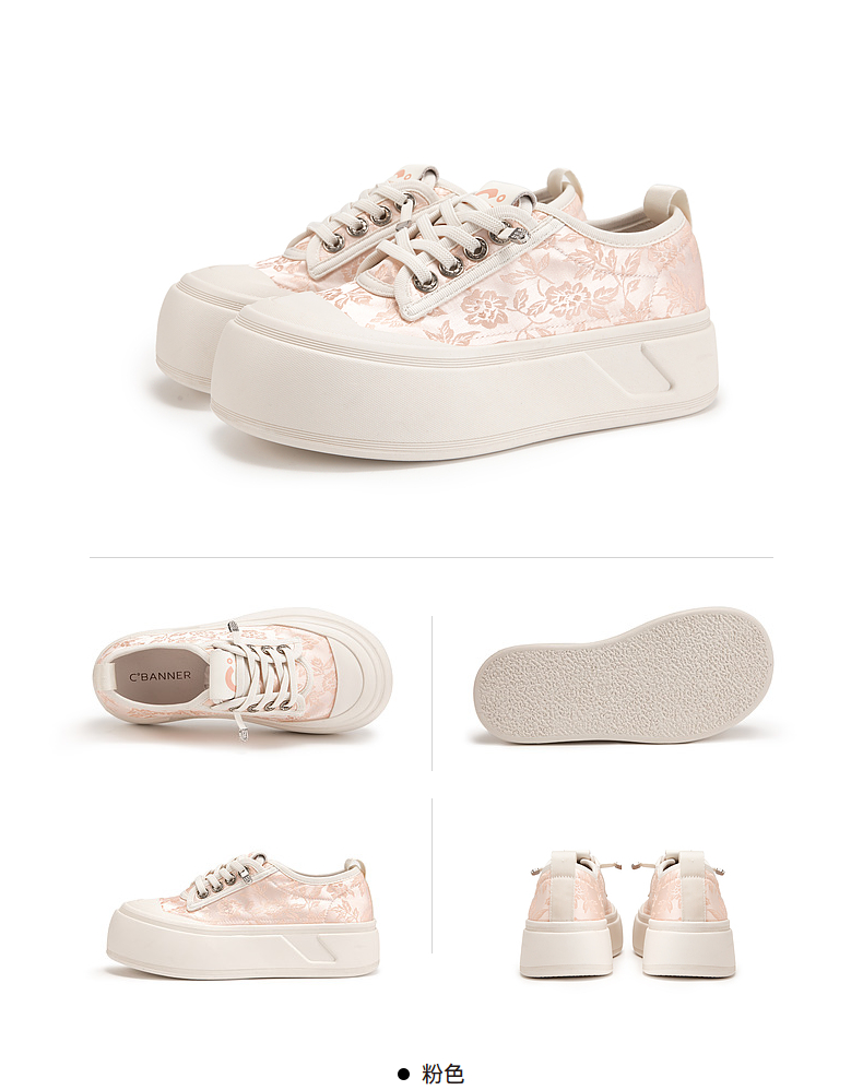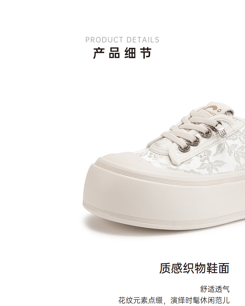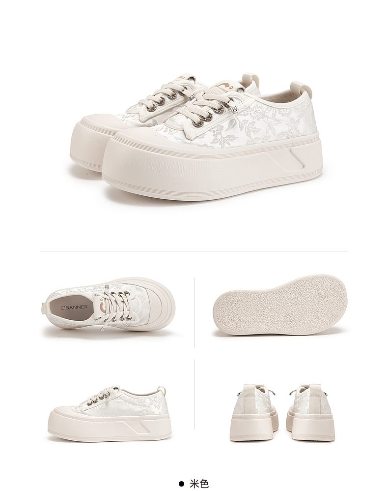 千百度厚底帆布鞋女款秋季增高小白鞋时尚运动休闲板鞋A24411361
