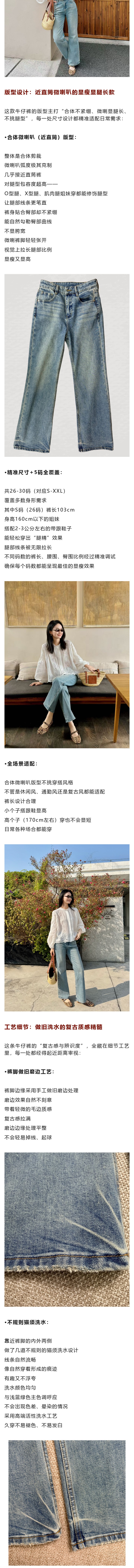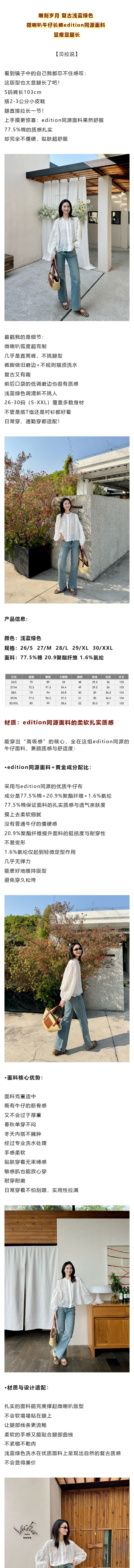 雕刻岁月 复古浅蓝绿色 微喇叭牛仔长裤edition同源面料 显瘦显腿长