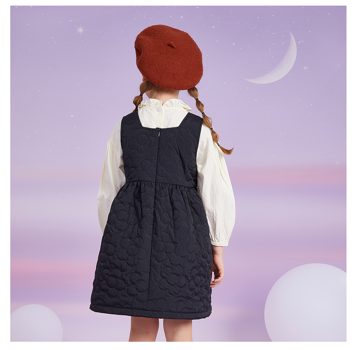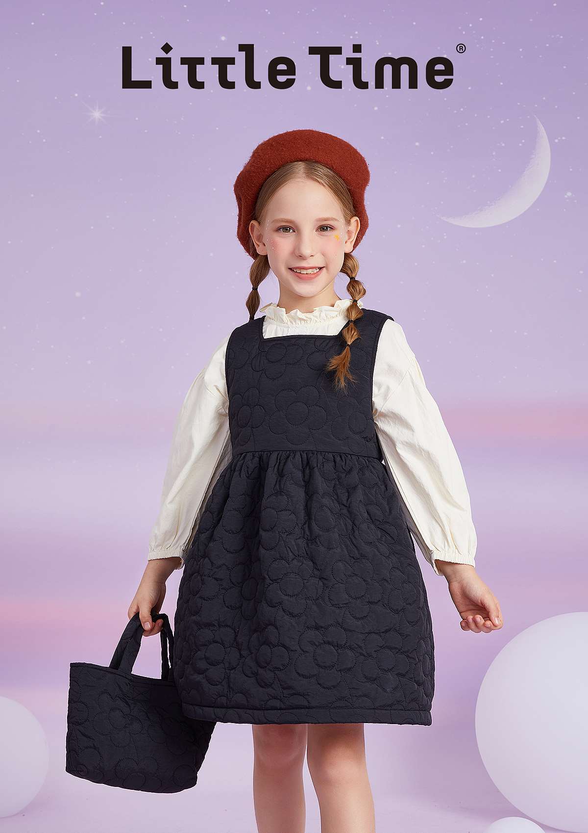 littletime女童花朵刺绣背心裙秋冬2021新款款儿童连衣裙