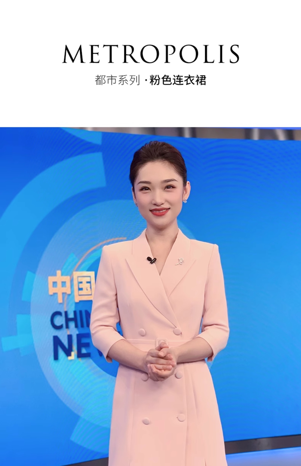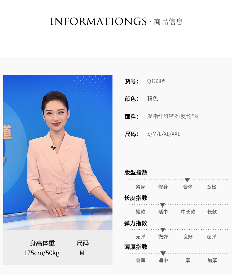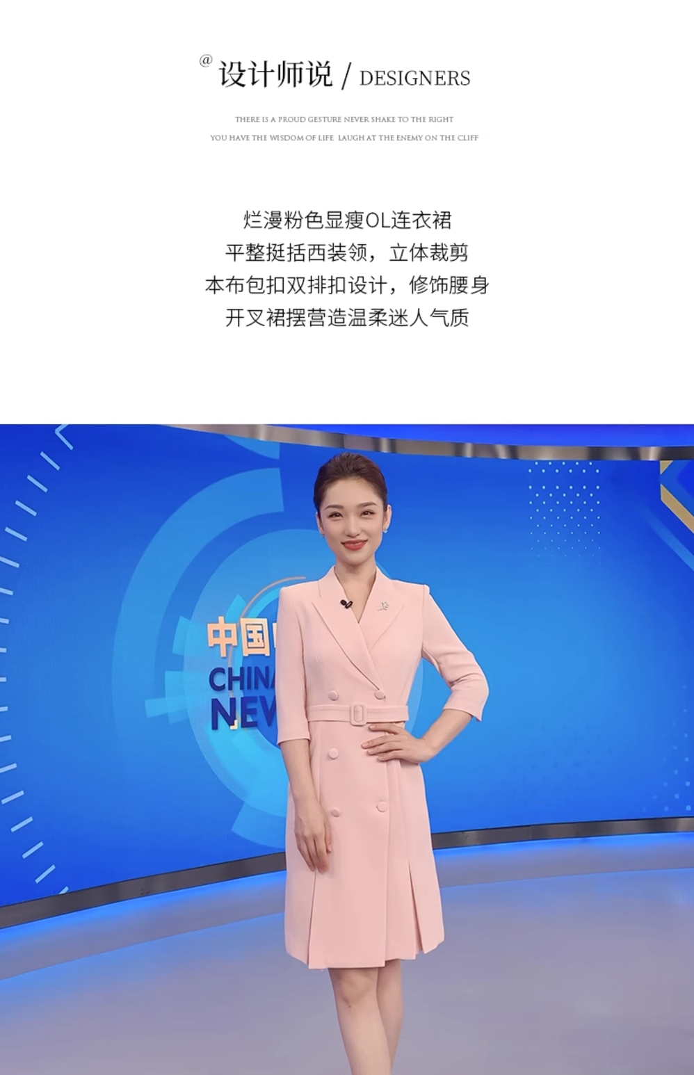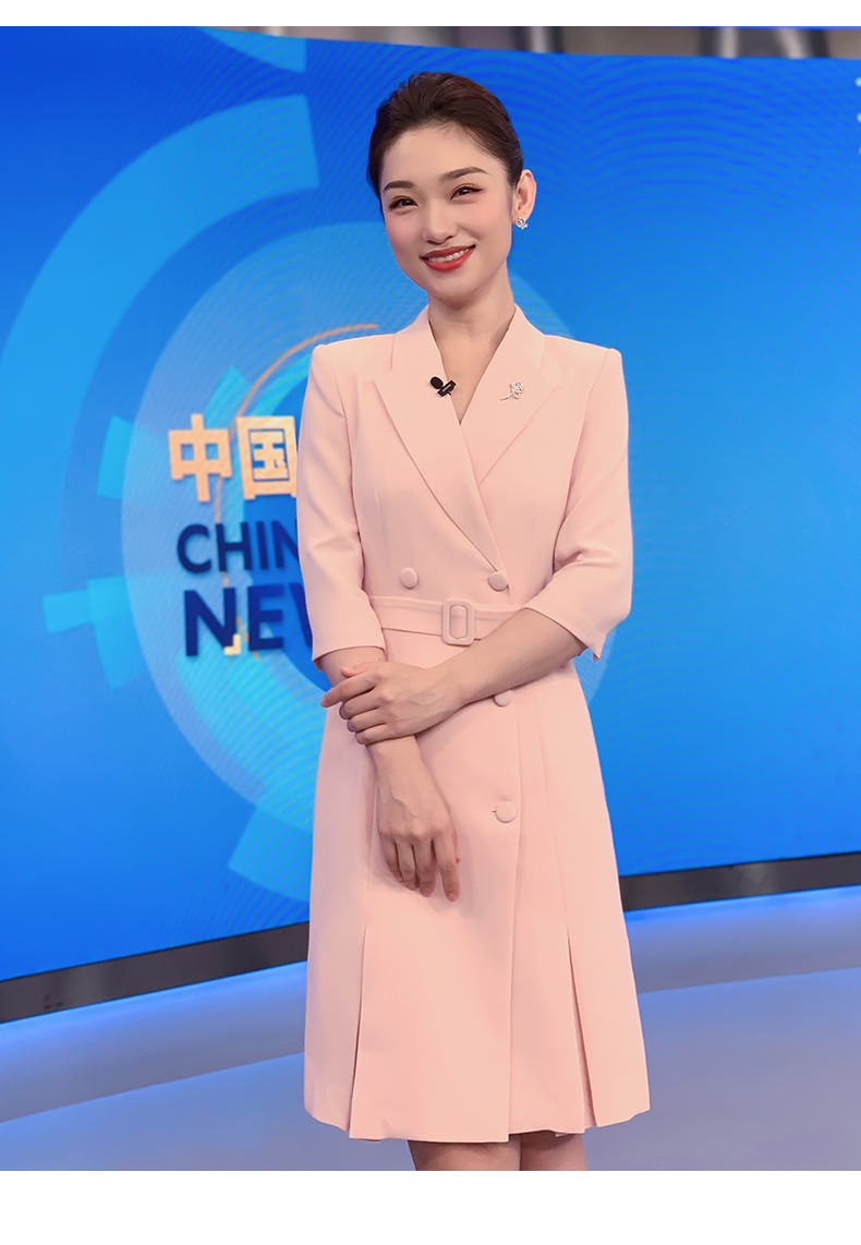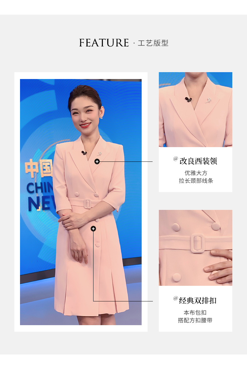 IWY/粉色教师录课正装职业连衣裙女腰带修身演讲主持人艺考西装裙Q13305