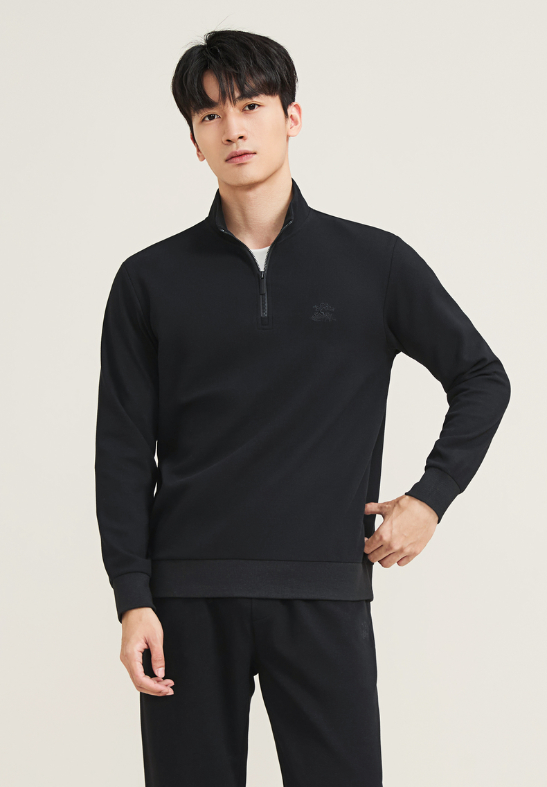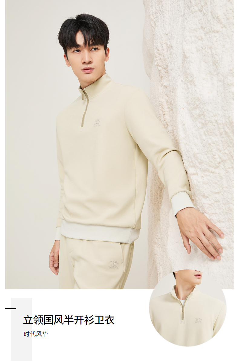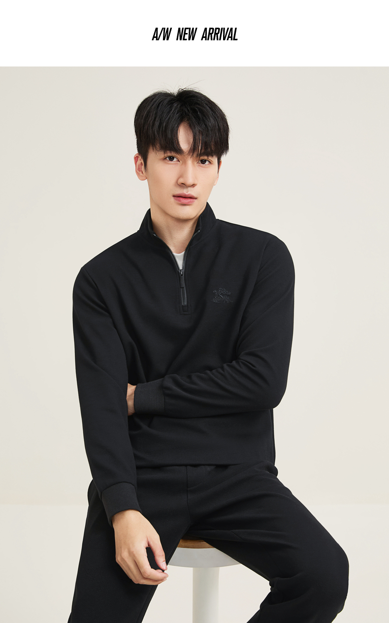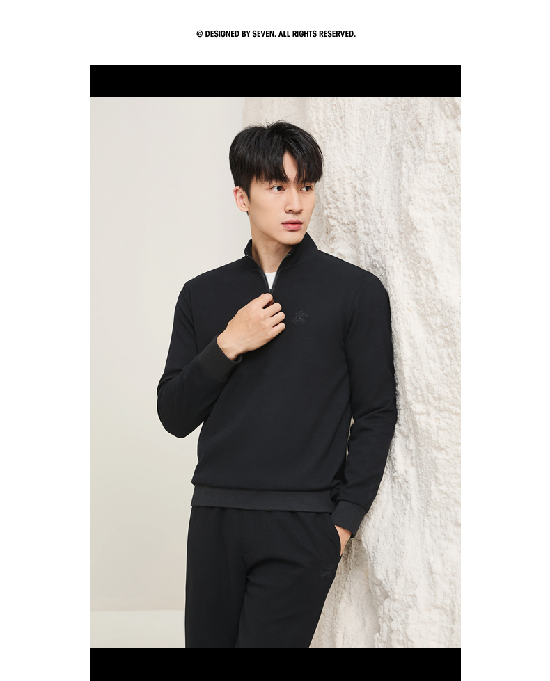 【国风/运动/休闲】柒牌男装立领半开衫卫衣字母图案弹力套头衫男129W70270