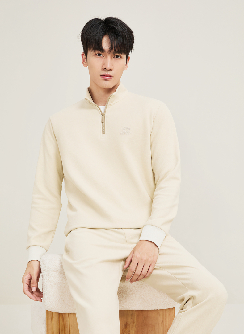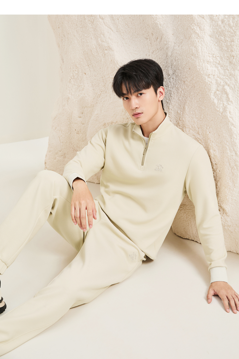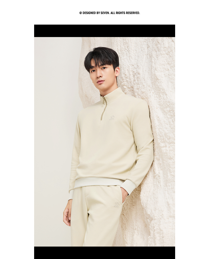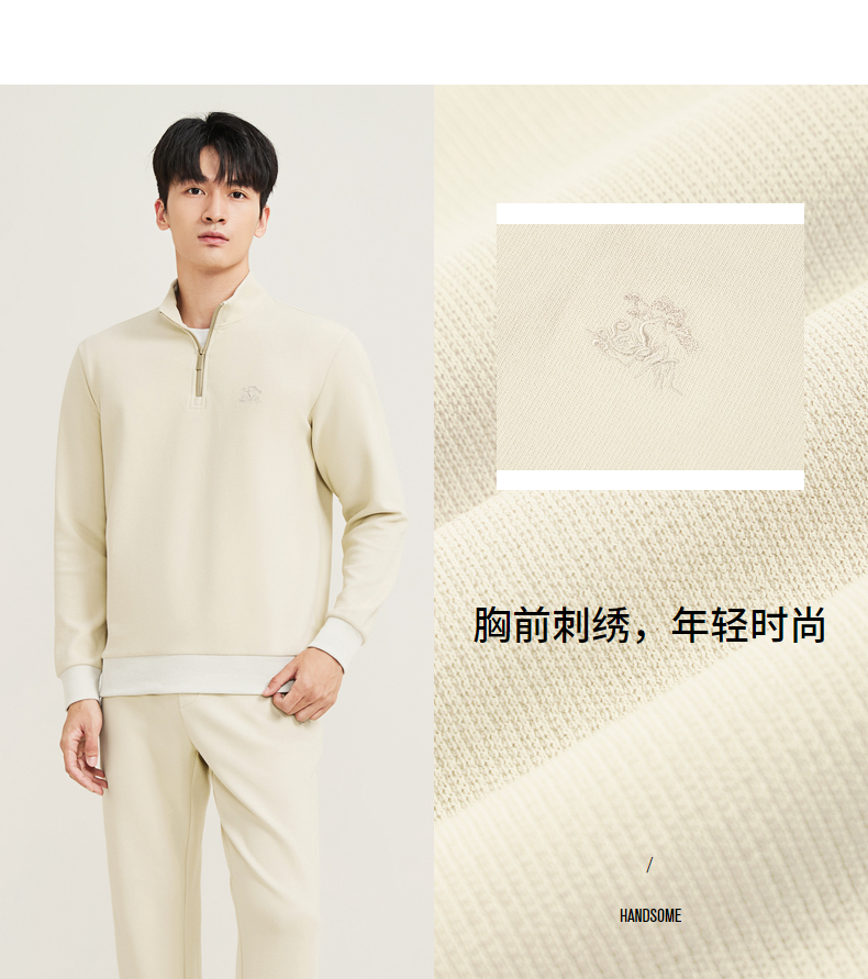 【国风/运动/休闲】柒牌男装立领半开衫卫衣字母图案弹力套头衫男129W70270