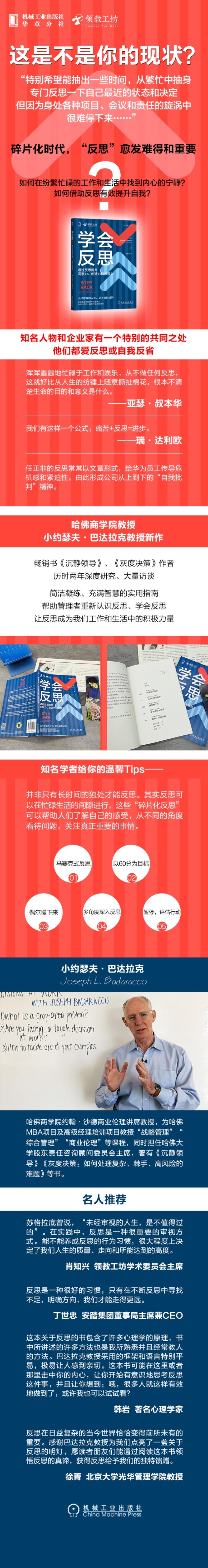 我们都希望能抽出一些时间,反思一下自己的目标和决定,但因身处各种任务、会议、决定和责任的旋涡中,我们很少有机会停下来。畅销书作者、哈佛商学院教授小约瑟夫·巴达拉克认为,人们并非需要长时间的独处和宁静才能反思。事实上,反思可以在忙碌生活的间隙进行,这些“碎片化反思”可以帮助人们了解自己的感受,从不同的角度看待问题,关注真正重要的事情,提升工作和生活的质量。巴达拉克教授花了约两年时间研究“反思”,阅读了大量与反思有关的经典文献和名人日记(某种意义上是一种凝结状态的反思),访谈了百余位管理者和专业人士,终于整理出这本简洁凝练、充满智慧的实用指南。阅读本书,有助于让反思成为我们工作和生活中的积极力量。