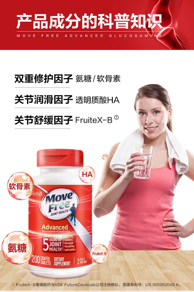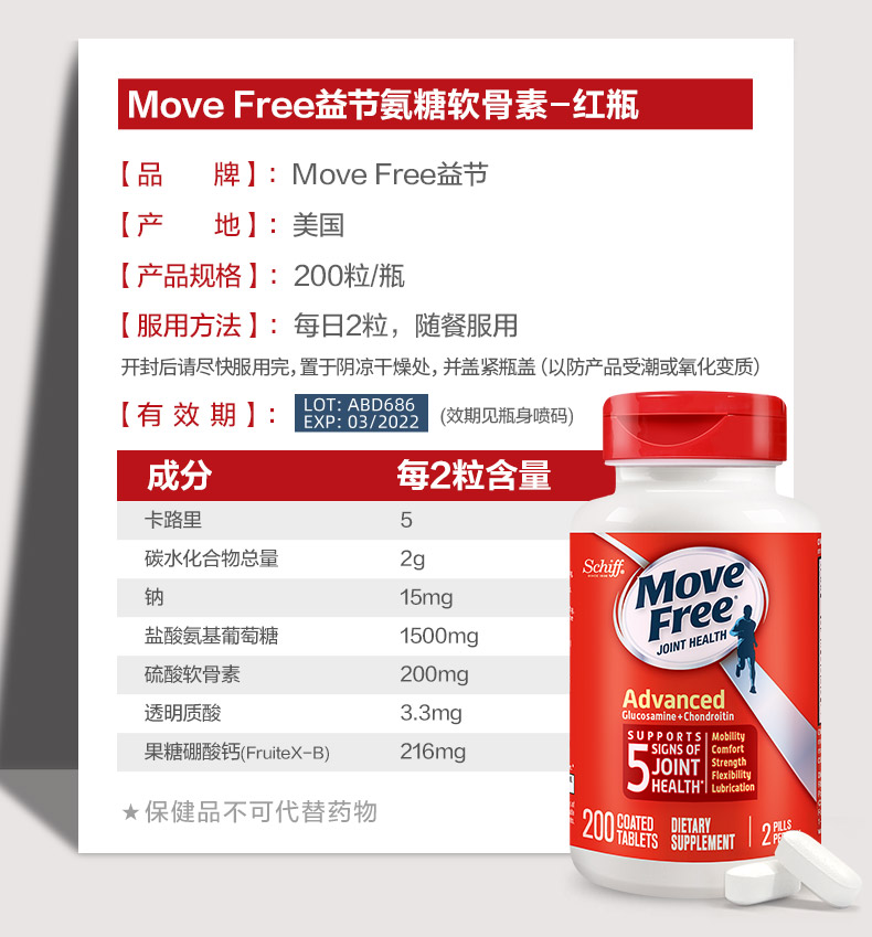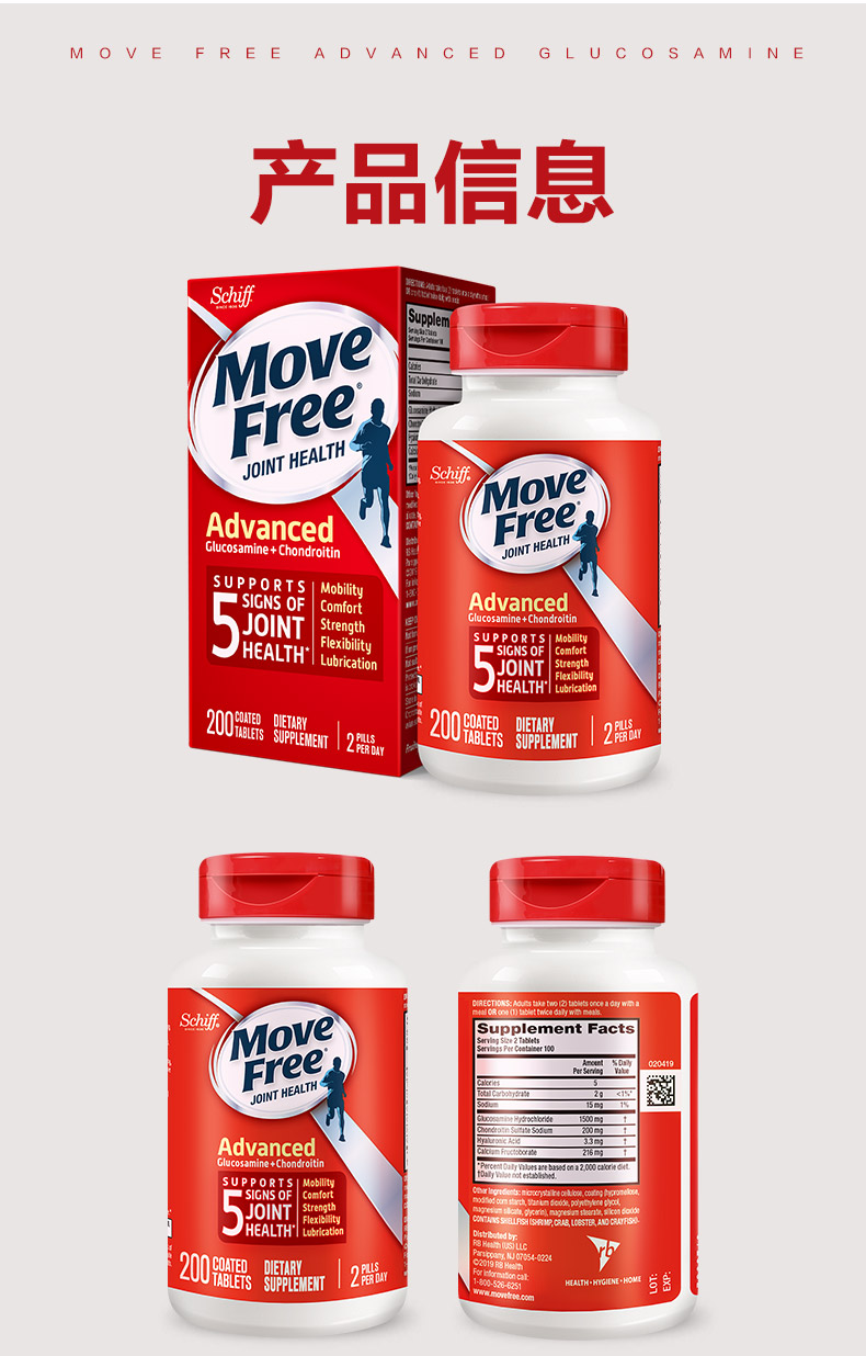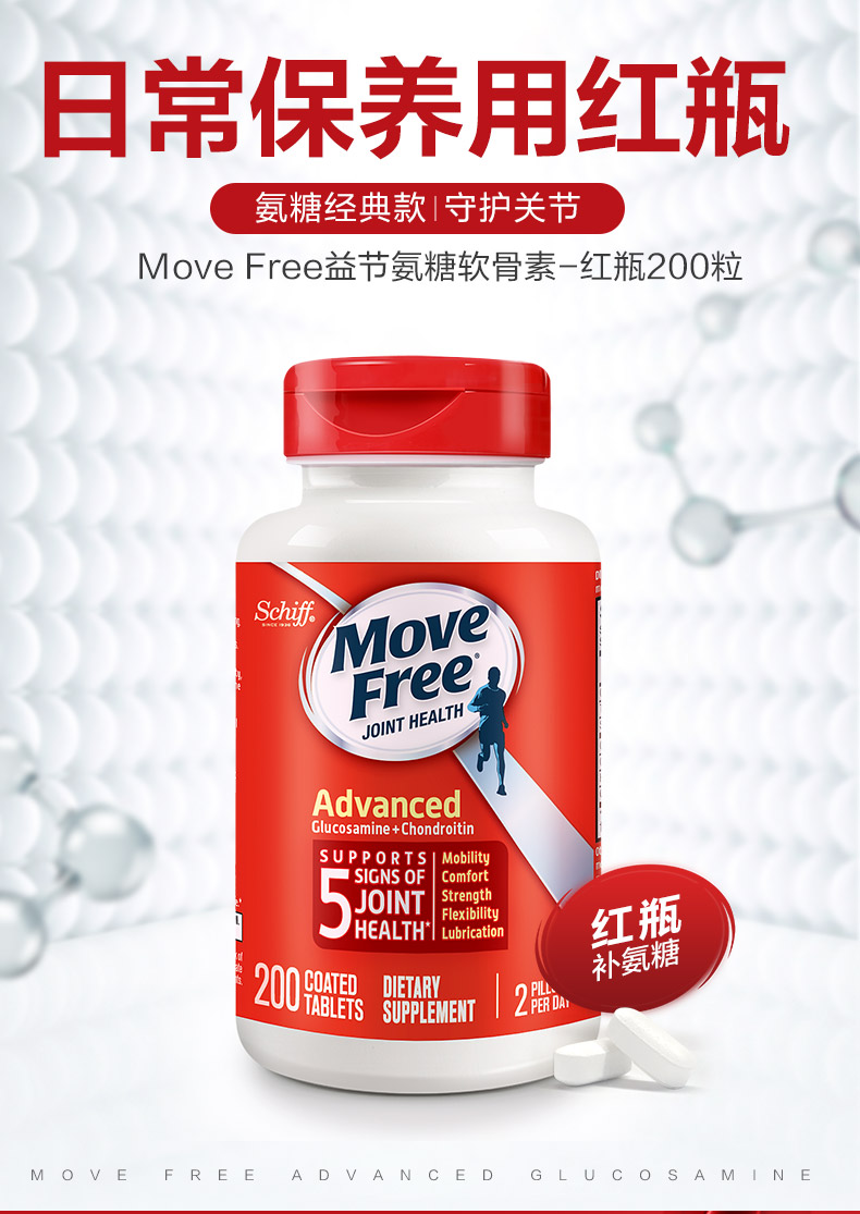 Schiff 旭福MoveFree维骨力氨糖软骨素钙片好搭档 红瓶200粒/瓶