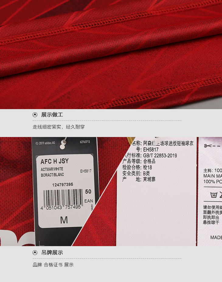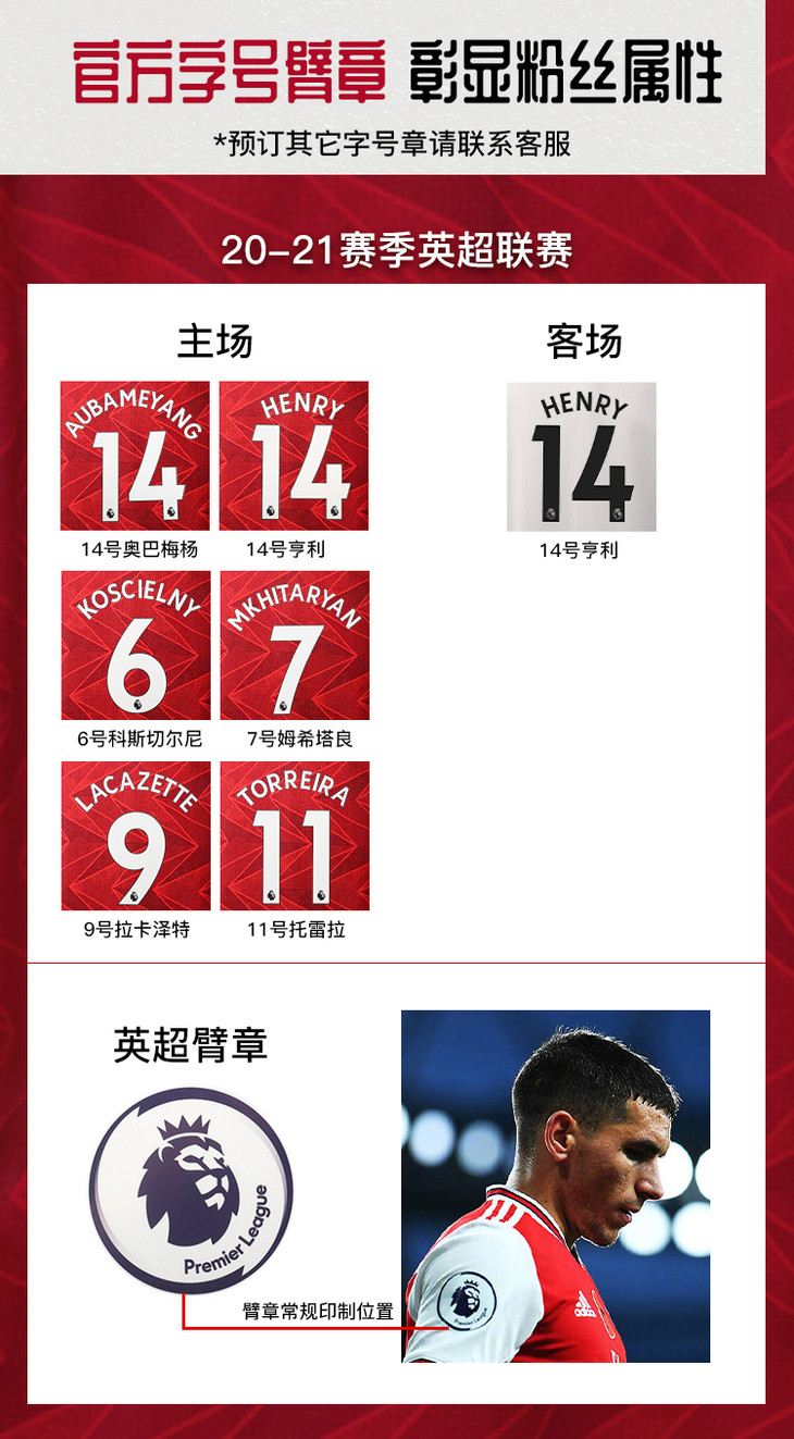 ADIDAS/阿迪达斯 20/21赛季阿森纳 主场球迷版球衣EH5817