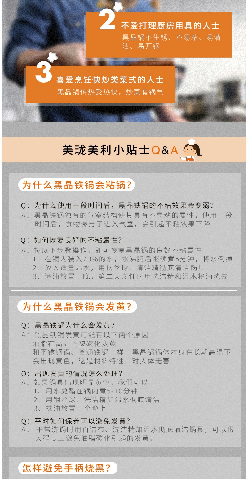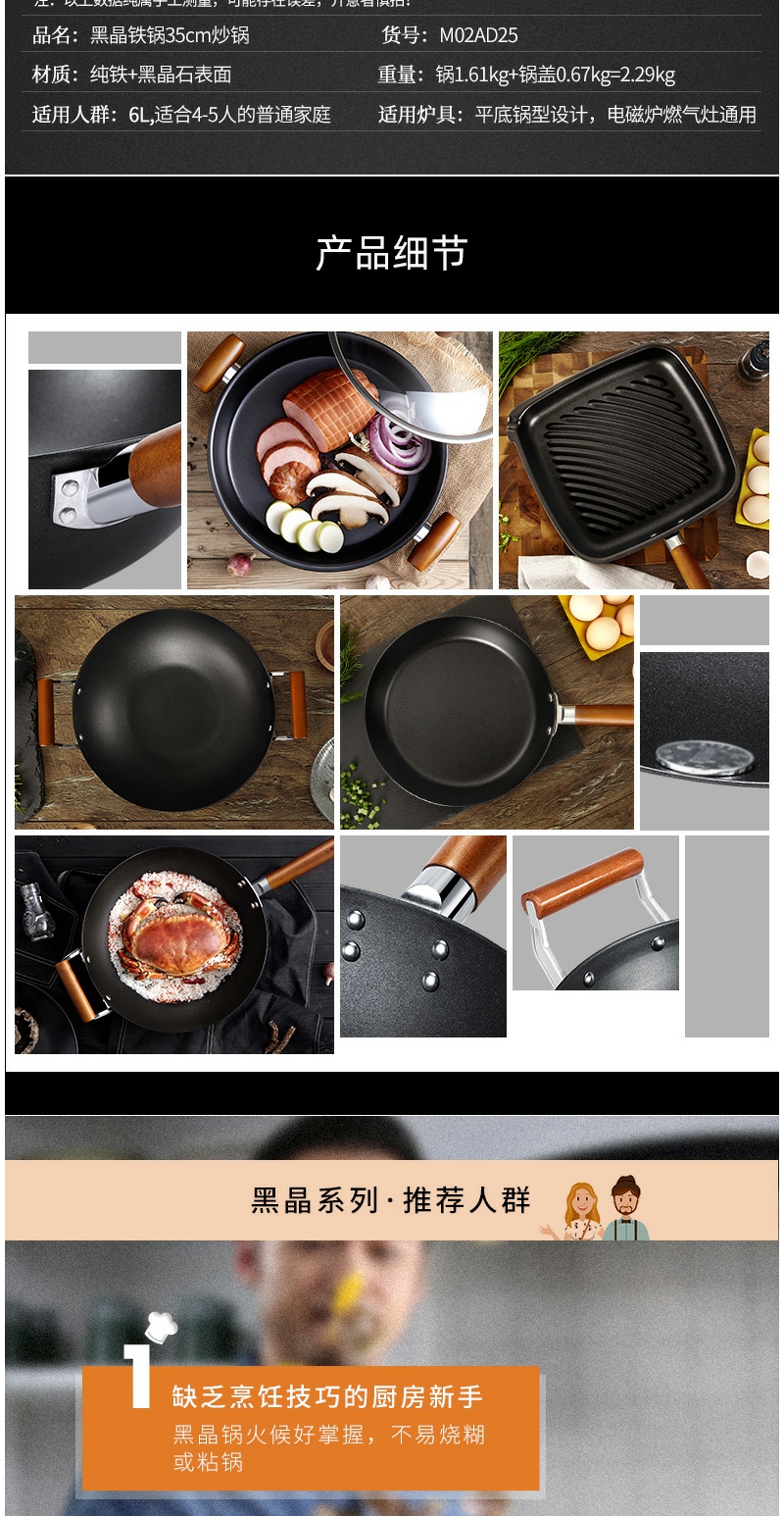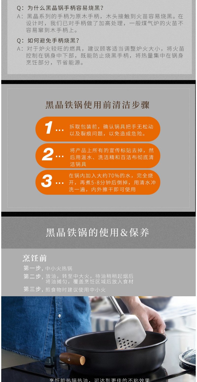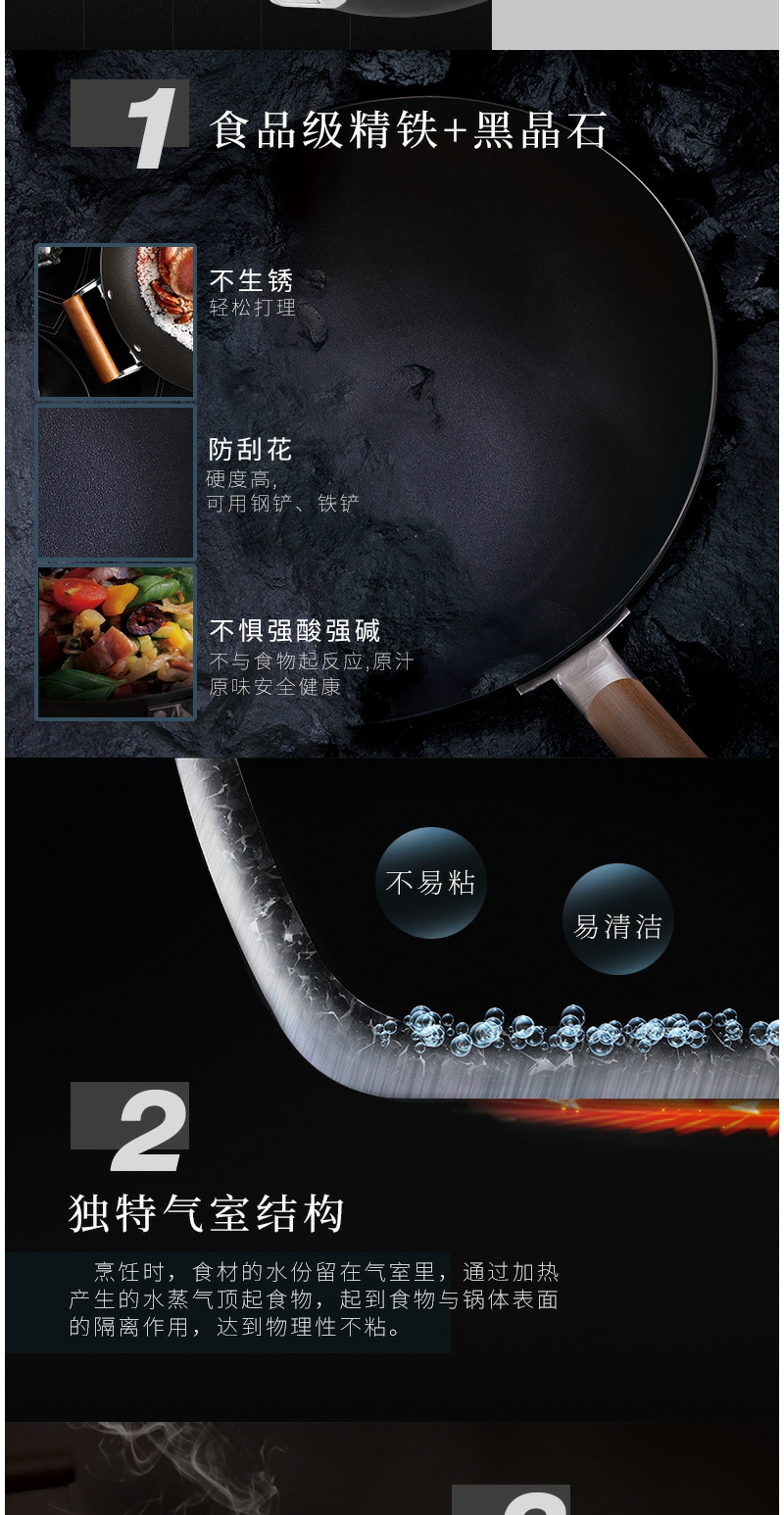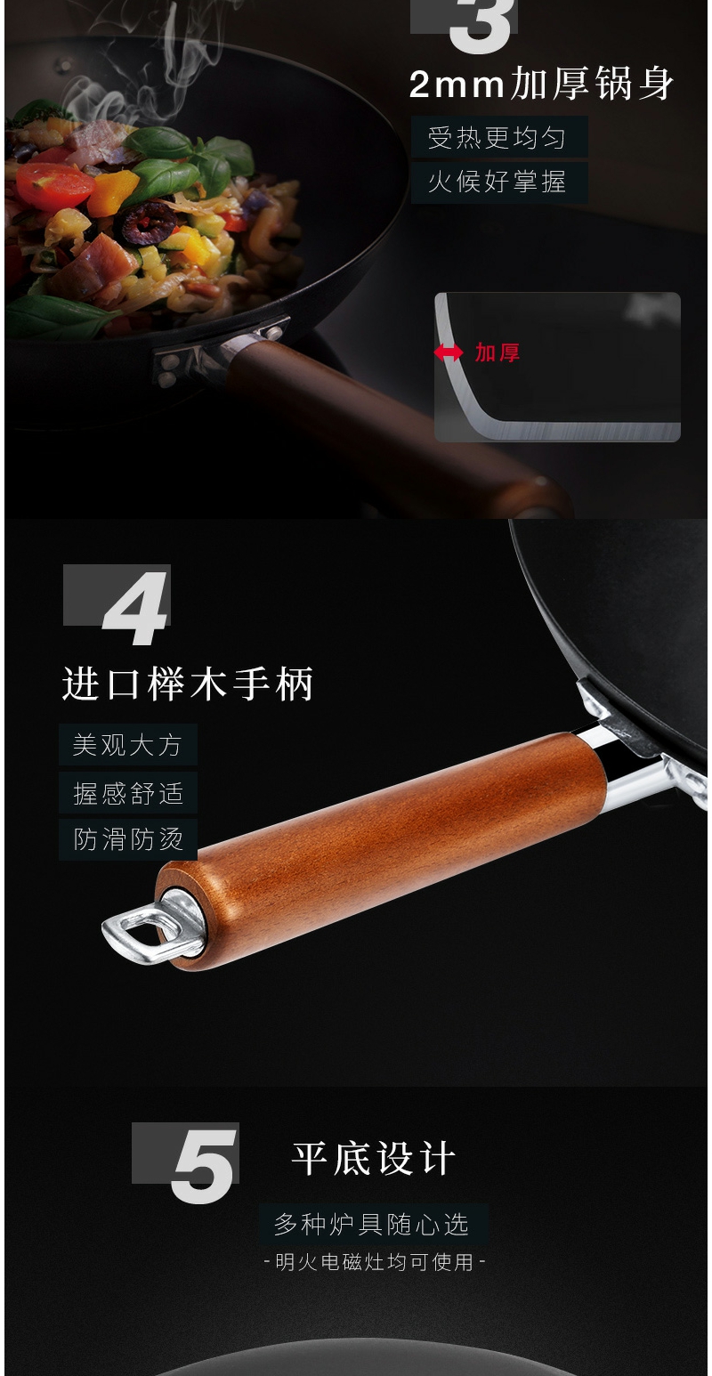 【直发】美珑美利 黑晶铁锅系列炒锅 少油烟物理不易粘炒菜锅 无涂层厨房铁炒锅 黑晶炒锅30cm