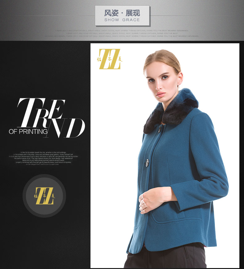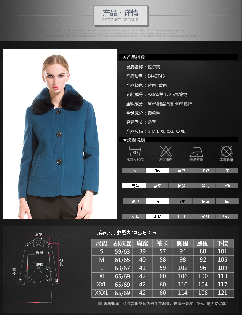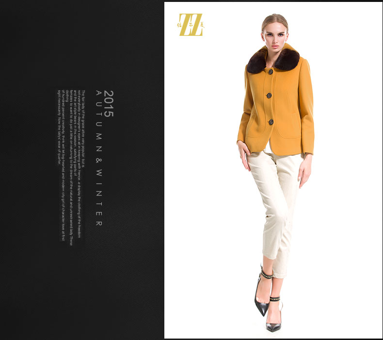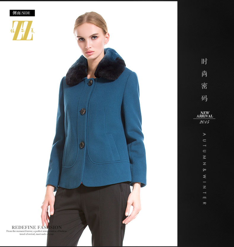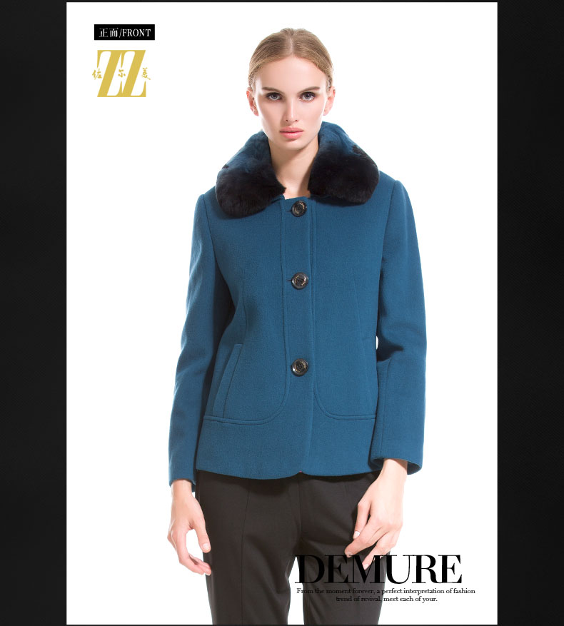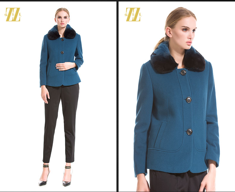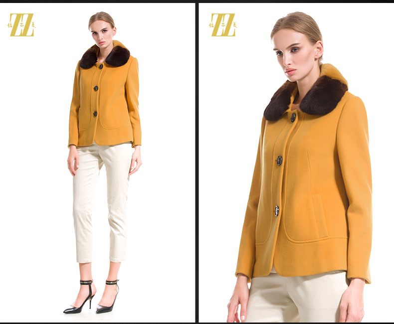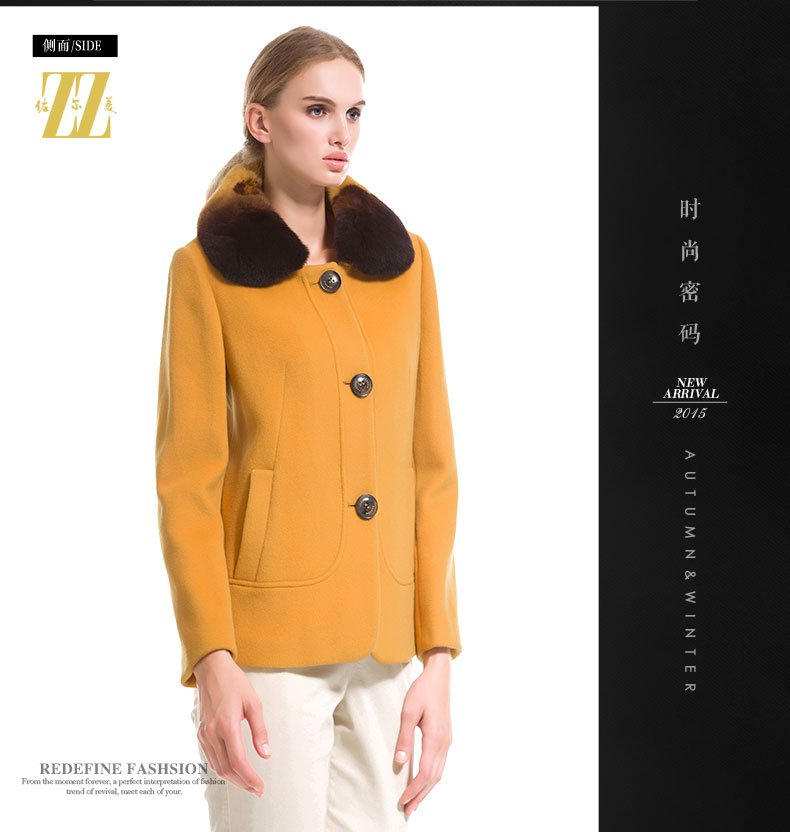 佐尔美秋冬女装毛领毛呢外套女羊毛大衣时尚短款E44ZT48
