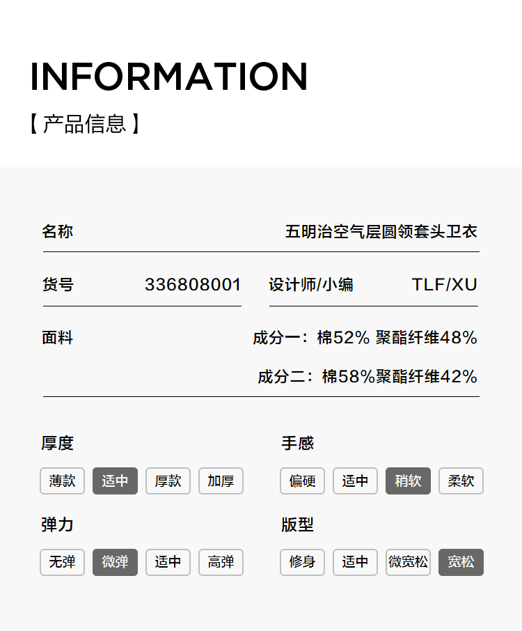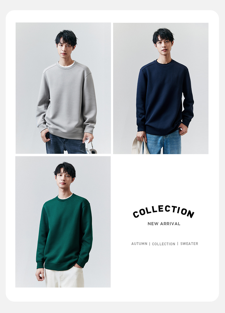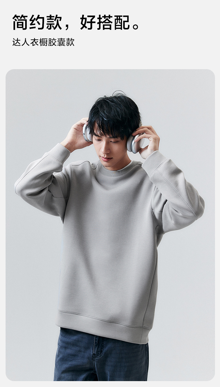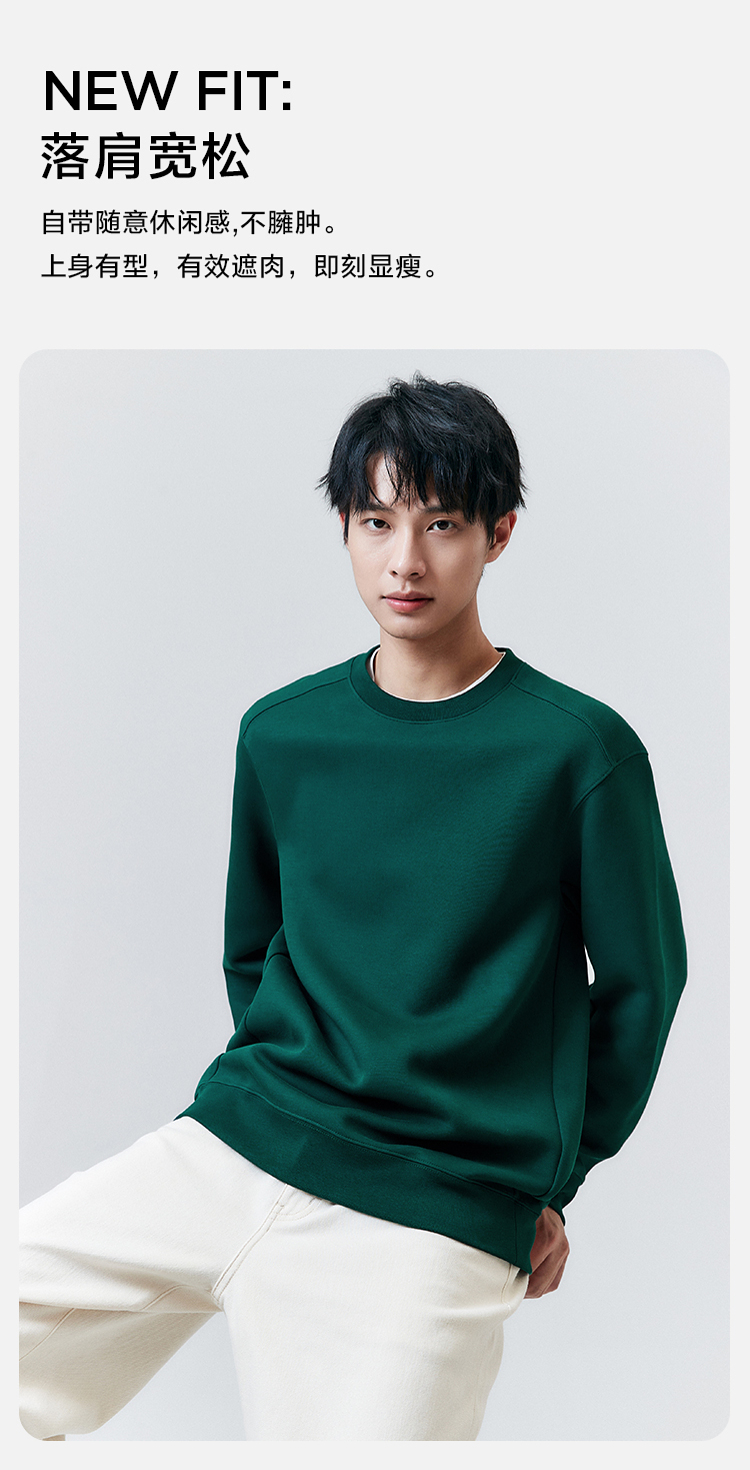 【品牌优选】棉仓336808001-5系空气层圆领套头卫衣外套男 春季宽松落肩休闲男士卫衣