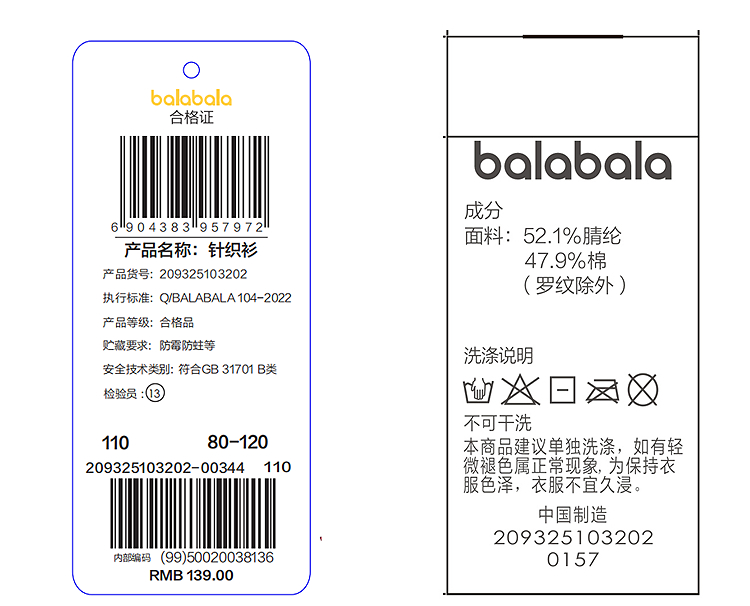 巴拉巴拉童装儿童毛衫男童针织衫女宝宝内搭2025新款秋装宽松百搭