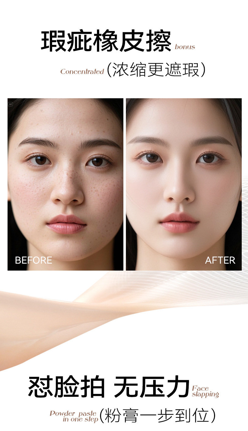 【自然隐瑕!底妆不易卡】修颜丝绒粉底膏 清透水润易上妆 遮瑕定妆粉 持妆自然亲肤粉膏-QA