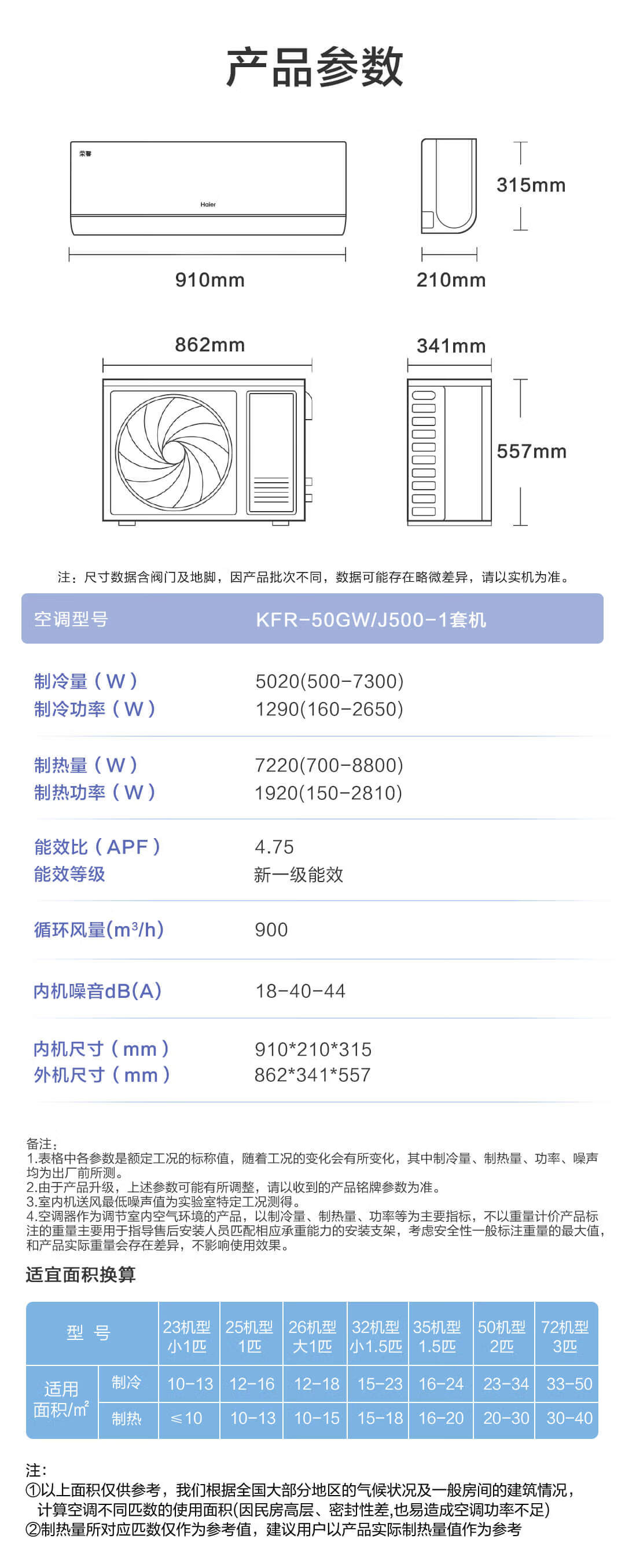 海尔(Haier)空调荣馨 两匹大挂机客厅空调一级能效省电防直吹空调 KFR-50GW/J500-1套机