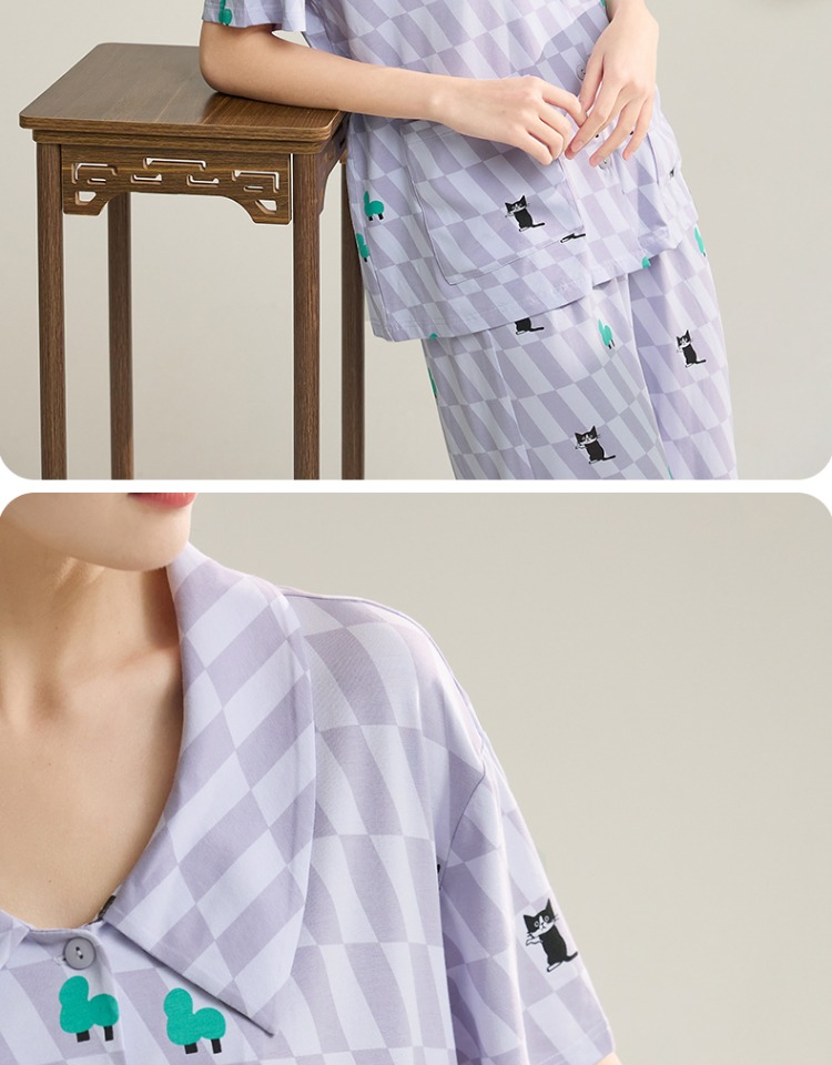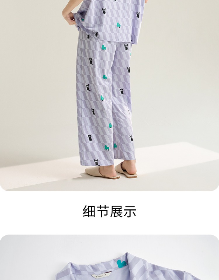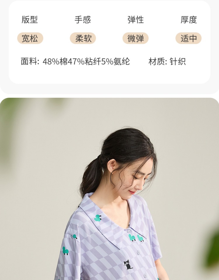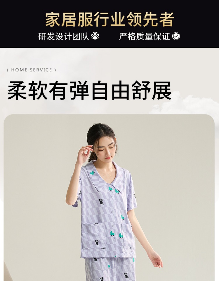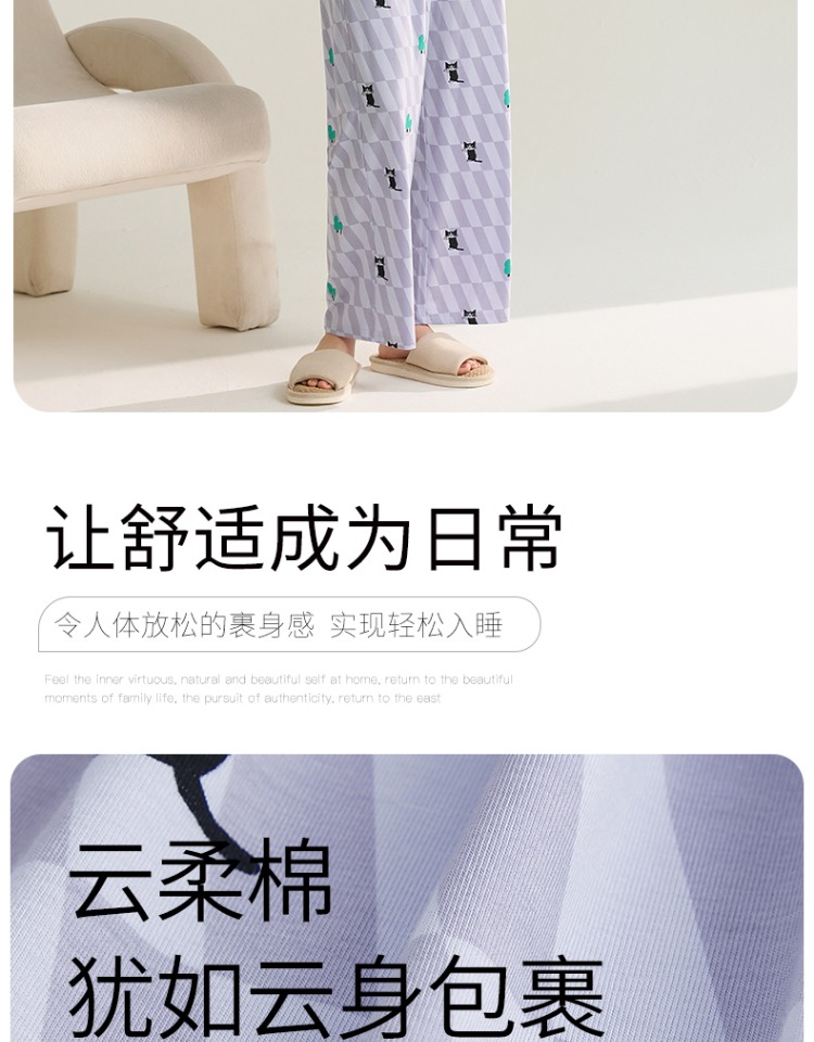 (合作款)芬腾【带胸垫】女款春夏季新款短袖长裤纯棉家居服套装yc0209011