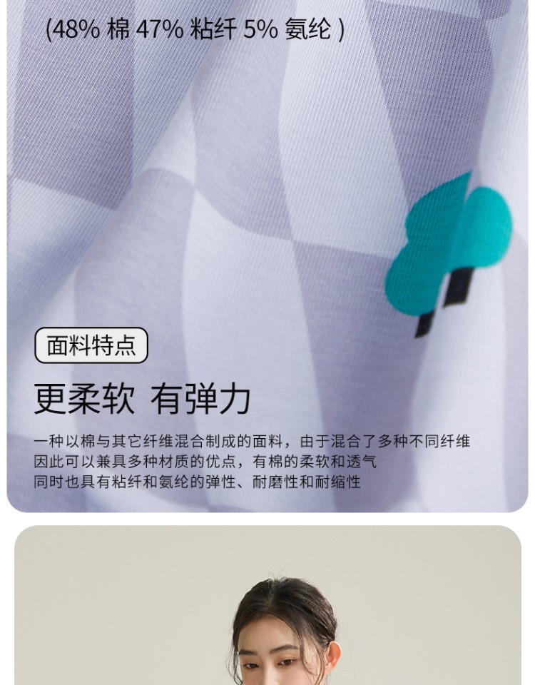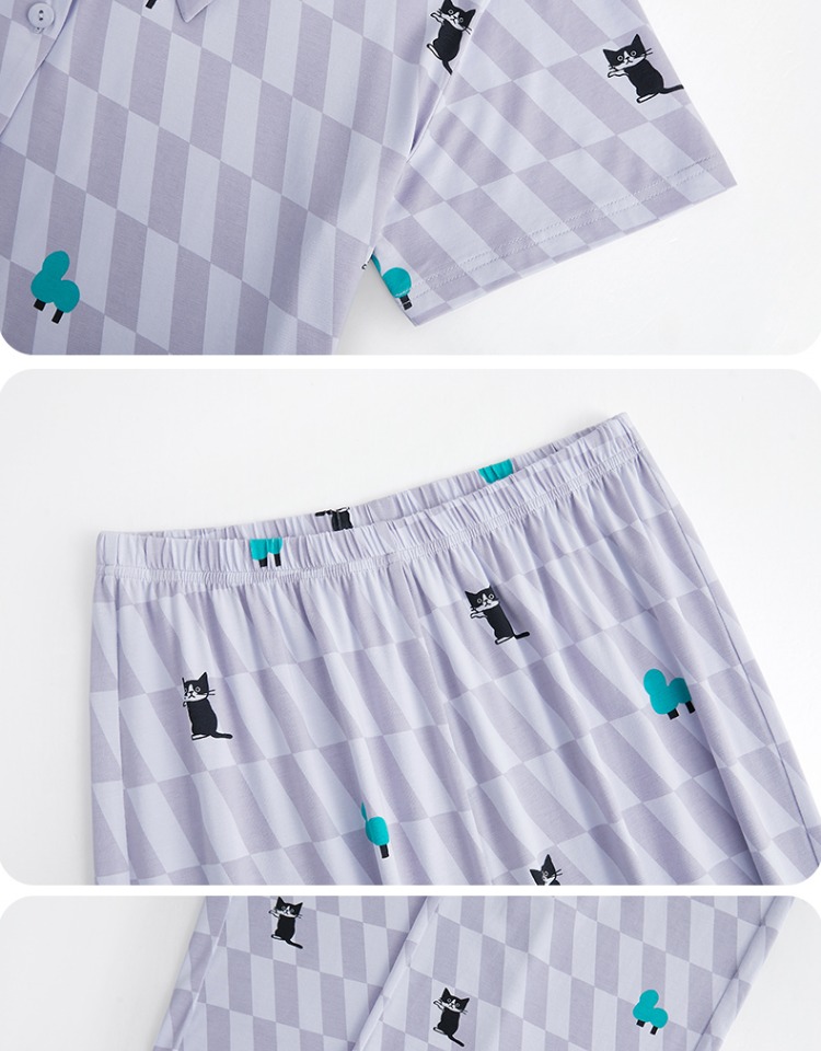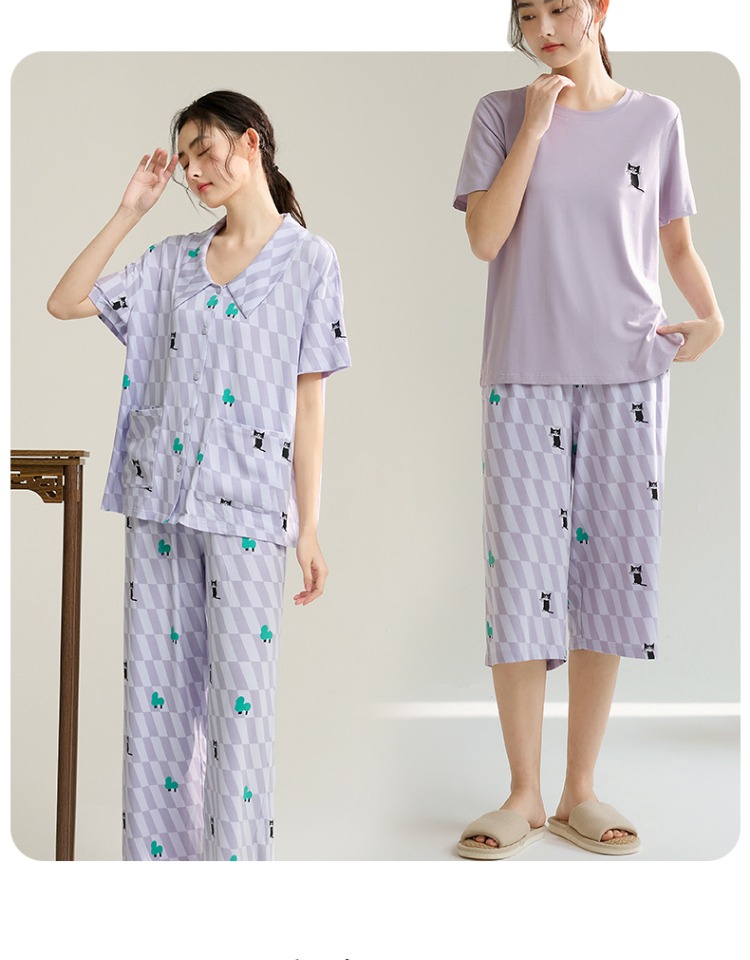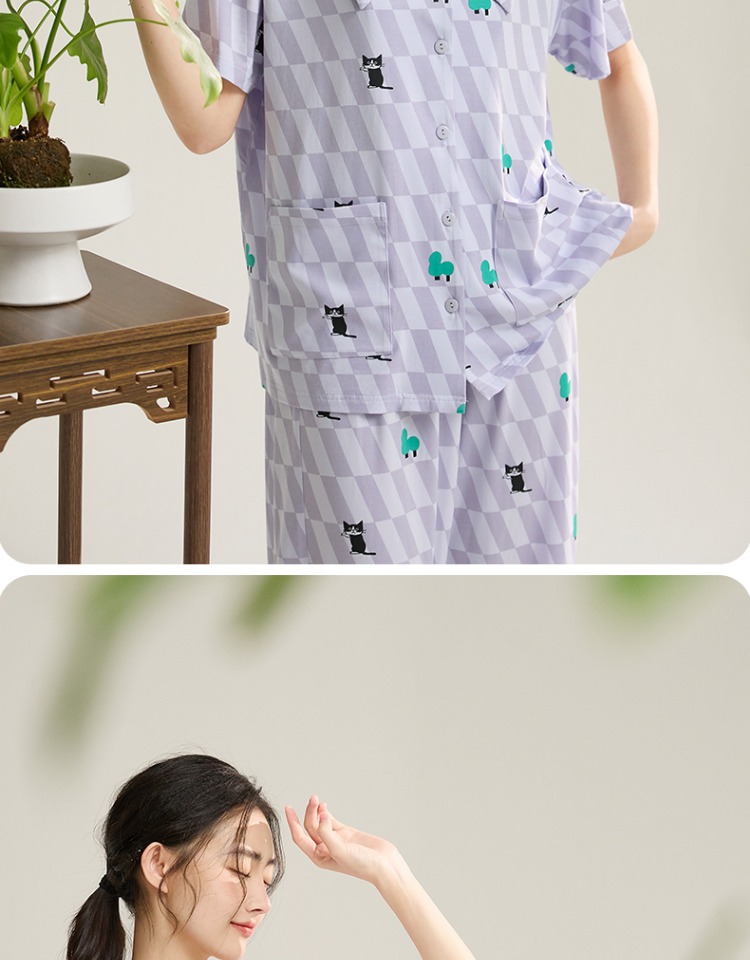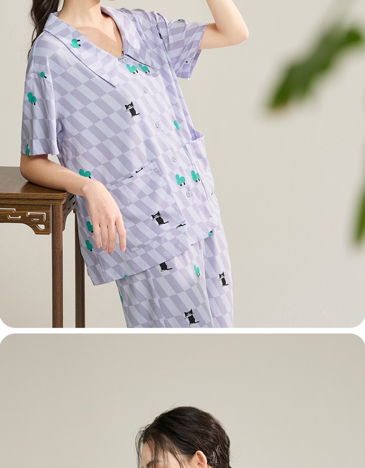 (合作款)芬腾【带胸垫】女款春夏季新款短袖长裤纯棉家居服套装yc0209011