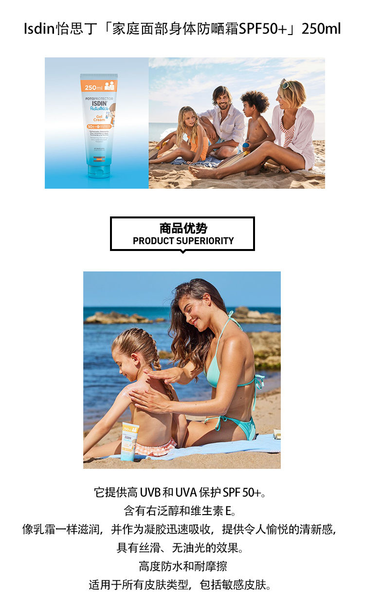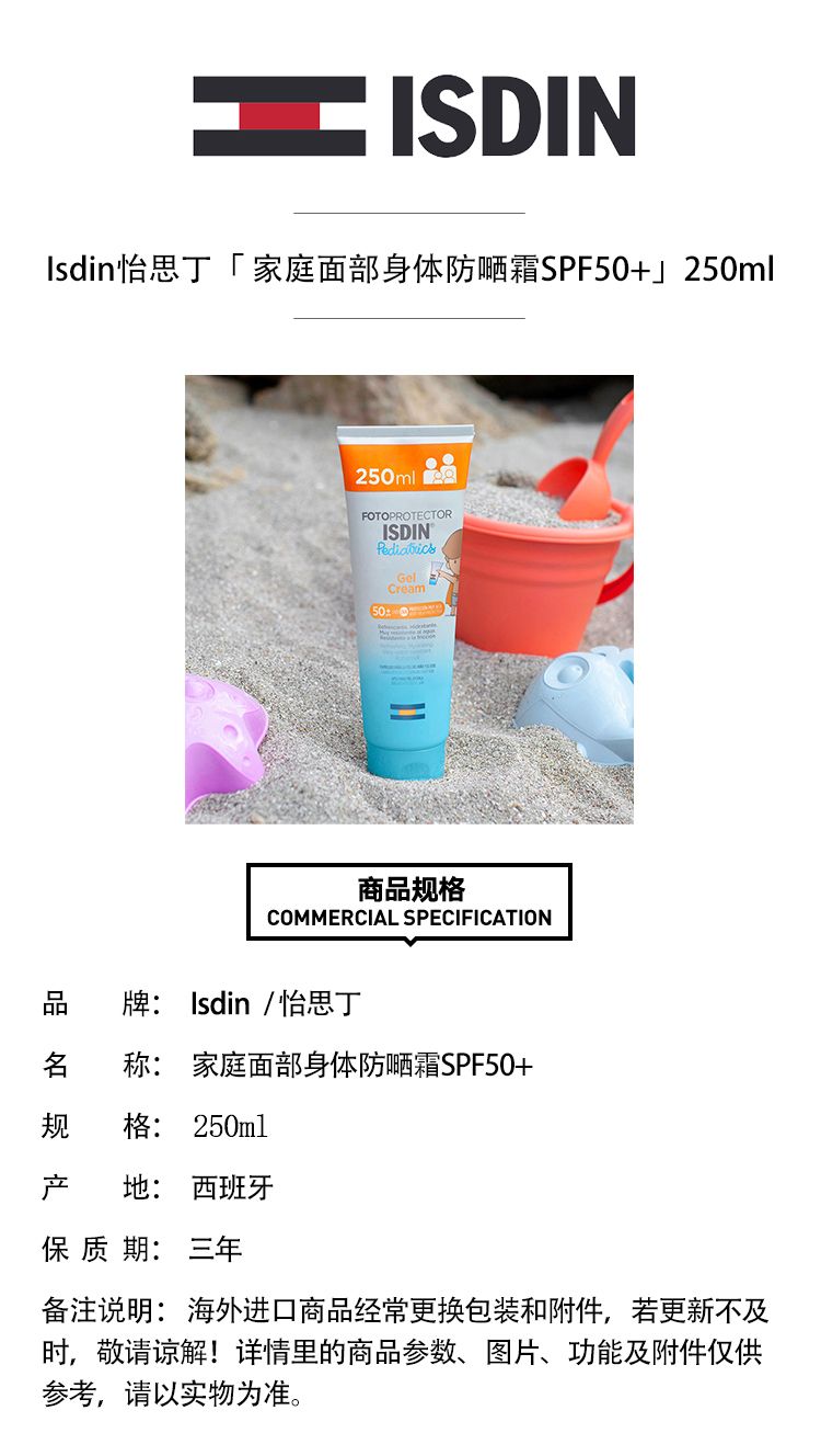 【预售 急单慎拍】Isdin怡思丁幼婴儿童家庭面部身体防嗮霜250ml SPF50+