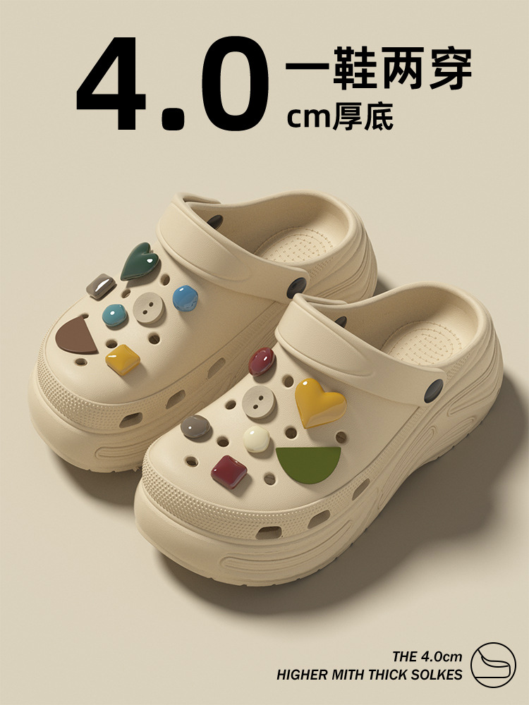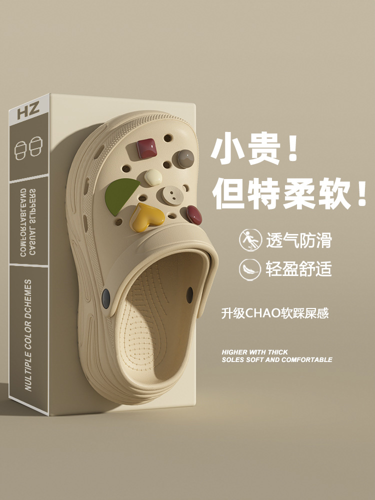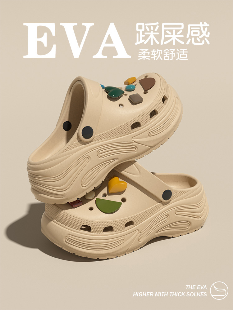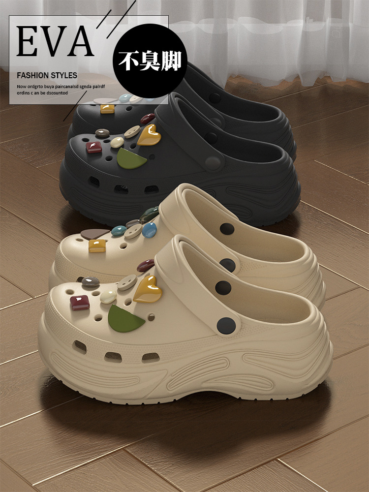 春节不打烊【柔软舒适❗️不臭不响】厚底洞洞鞋女增高新款沙滩拖EVA防滑夏季外穿包头半凉拖鞋女。jd
