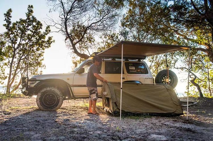 澳洲 ARB 遮阳帘 侧帘 独立的可伸缩遮阳篷安装在大多数车辆上,适合大多数车顶行李架侧面,方便存放,以便在抵达时立即使用。专门设计用于恶劣的内陆条件,遮阳篷具有阳极氧化高度可调节伸缩腿,维可牢尼龙搭扣固定屋顶,厚度增强的铝挤压件均固定在重型尼龙增强PVC袋中,并与外部元件无关。由坚韧的PU涂层300gsm聚酯/棉花撕裂帆布制成,遮阳篷是完全防水的,并提供UVP 50+等级。