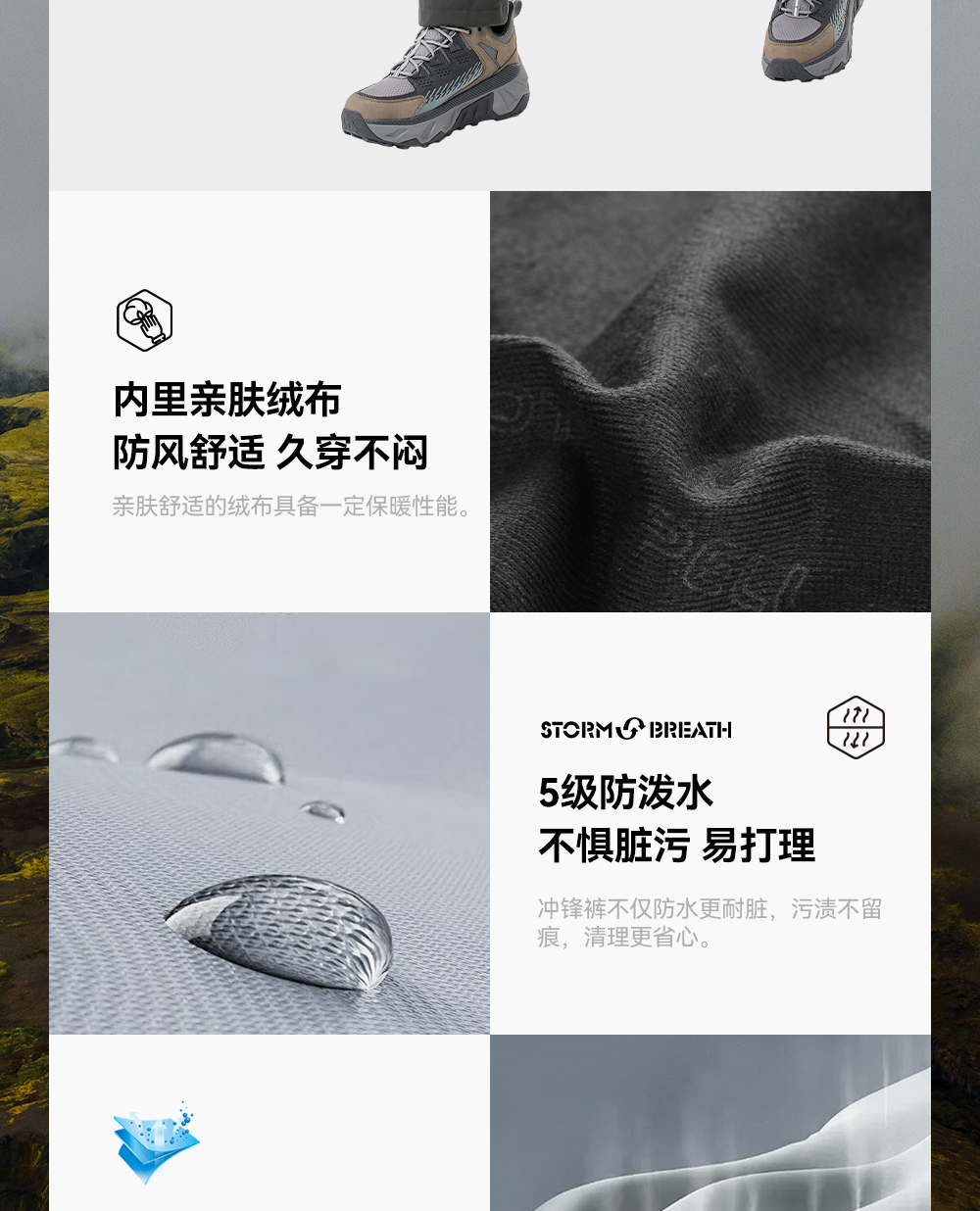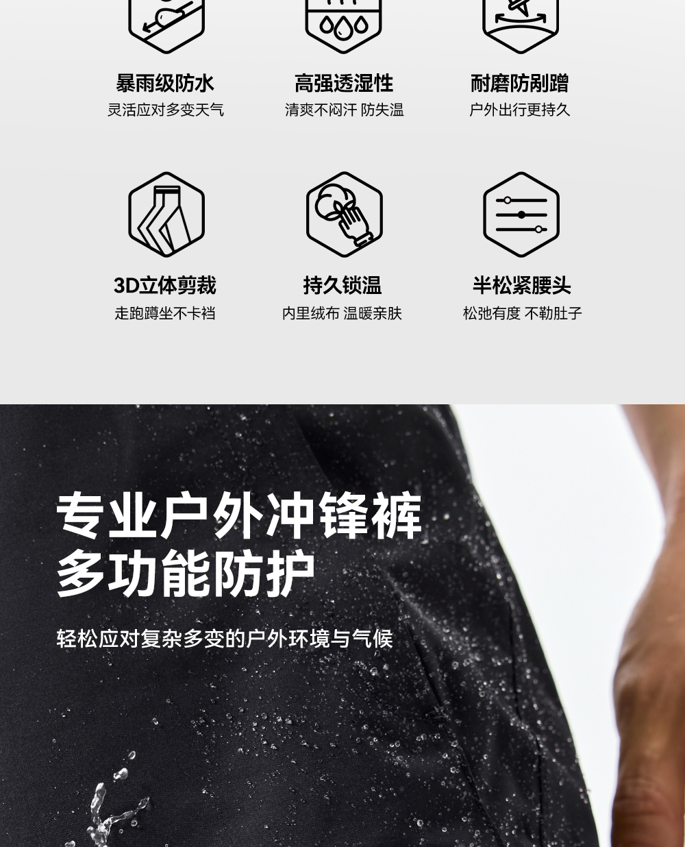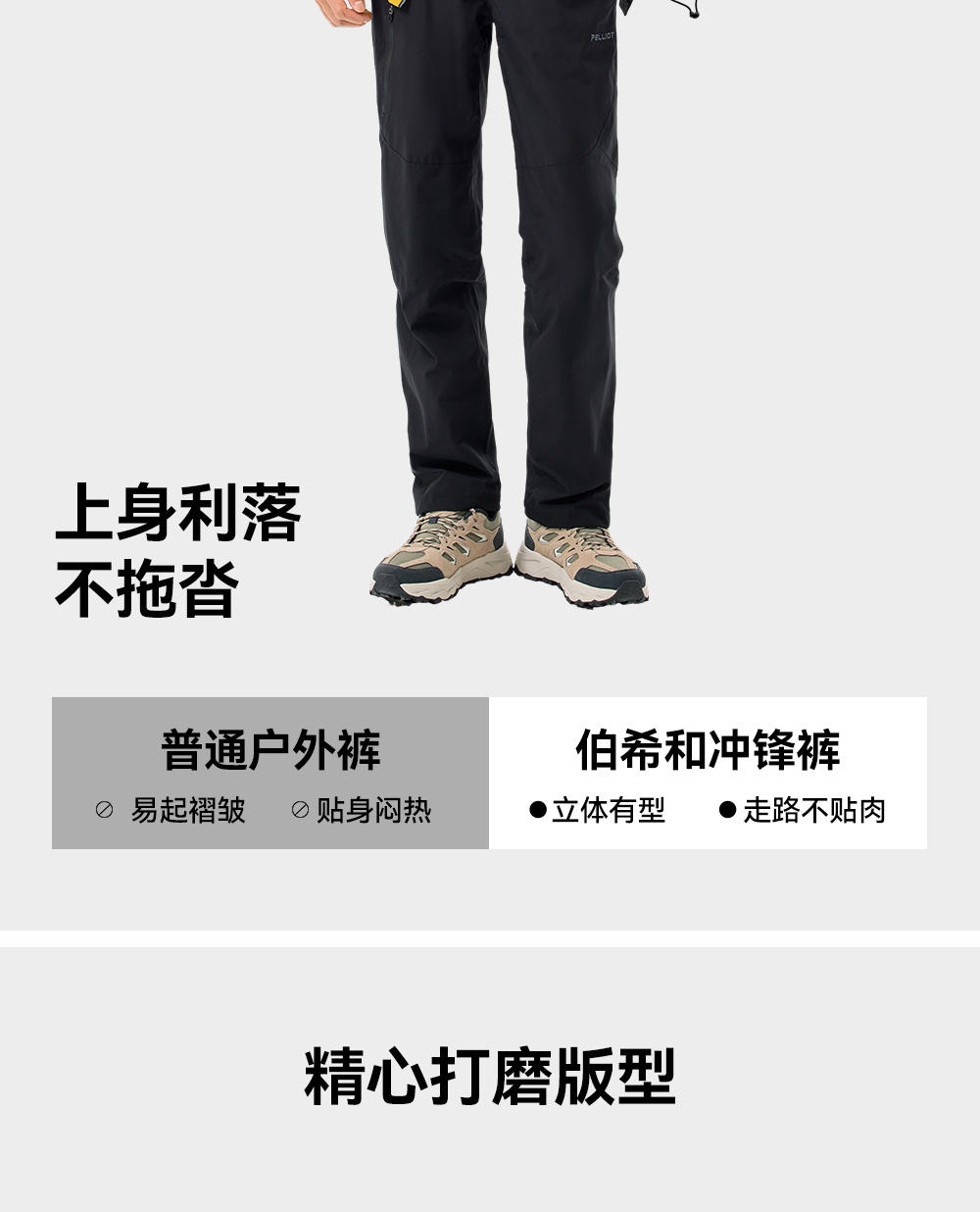 【经典款】伯希和户外冲锋裤男25新款防风轻量徒步登山裤运动长裤