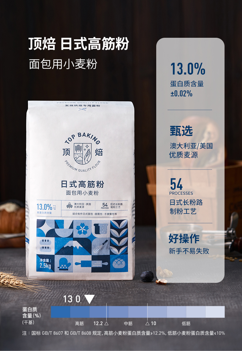 顶焙日式高筋面粉烘焙专用面包粉2.5kg吐司披萨原料家用小麦粉5斤