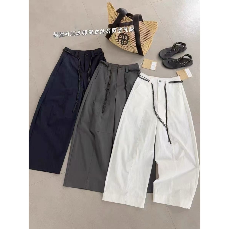 衣服女装裤子 极简流苏腰带空气裤 阔腿裤舒适简约 纪念日百货-1件163596021