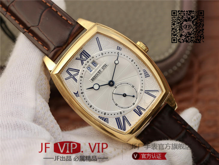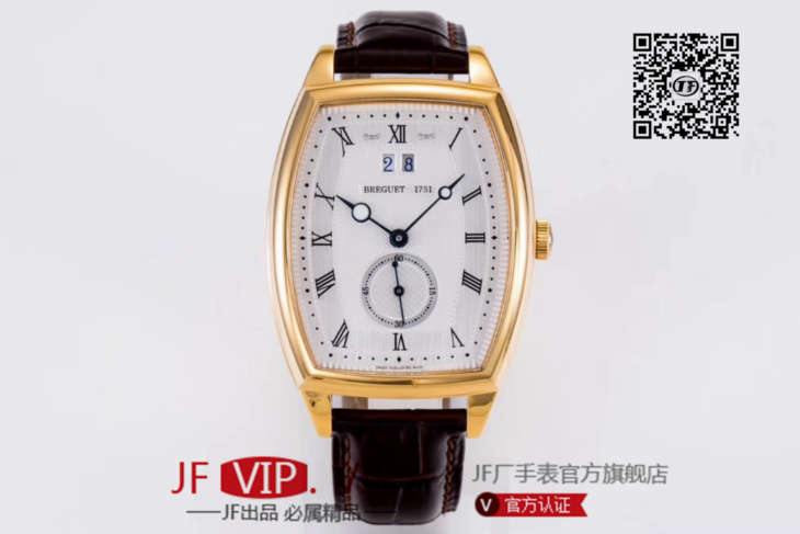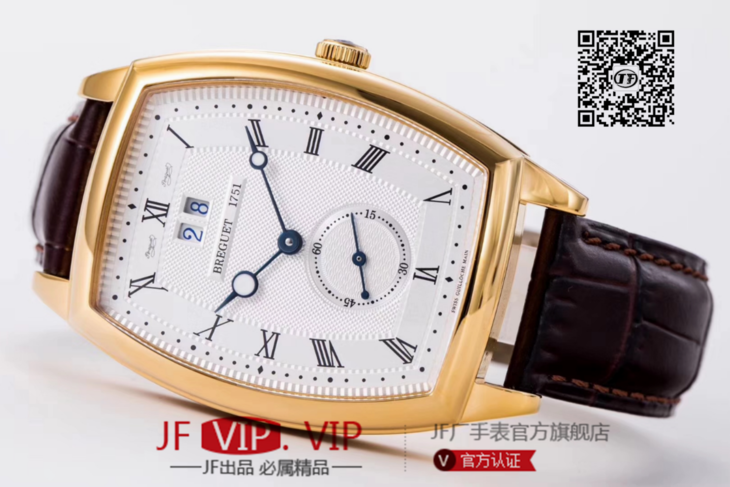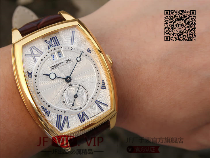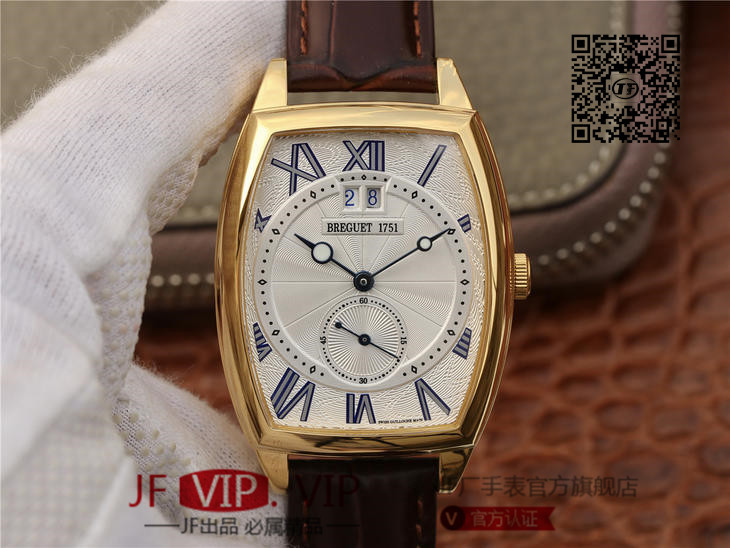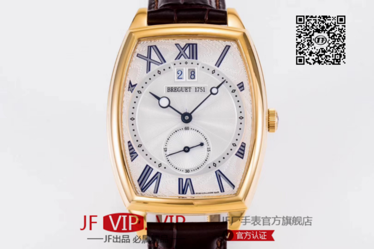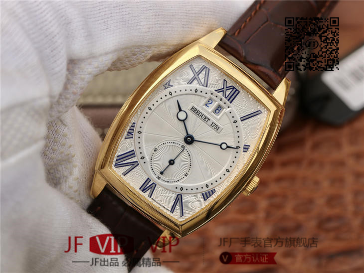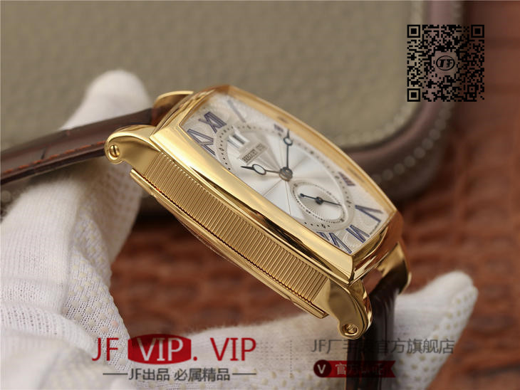 HG宝玑传承系列大日历显示腕表,别致的酒桶形表壳融合复杂功能于一身的5410,表壳外缘饰有钱币纹。