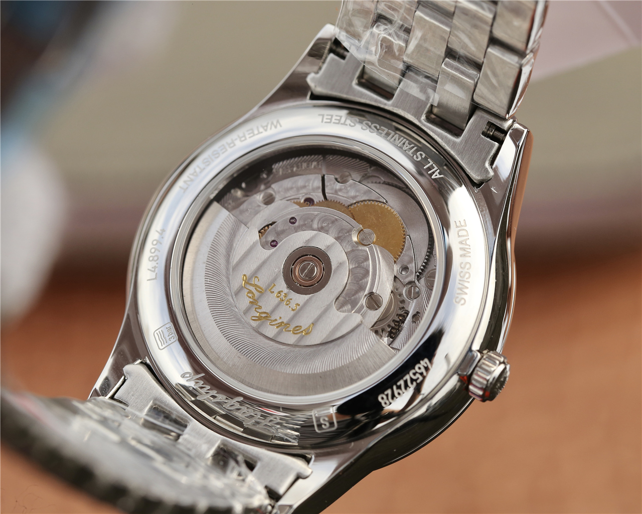 GK浪琴全新升级V3版,浪琴军旗系列双日历L4.899.4.12.6,尺寸38.5mm。男士腕表,精钢表带,自动机械机芯,透底。
